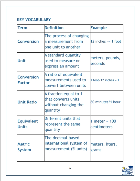 My Math Buddy™ Unit 6 is the ultimate toolkit—equipping students with the rules, formulas, conversions, and thinking strategies that make every other math unit easier.