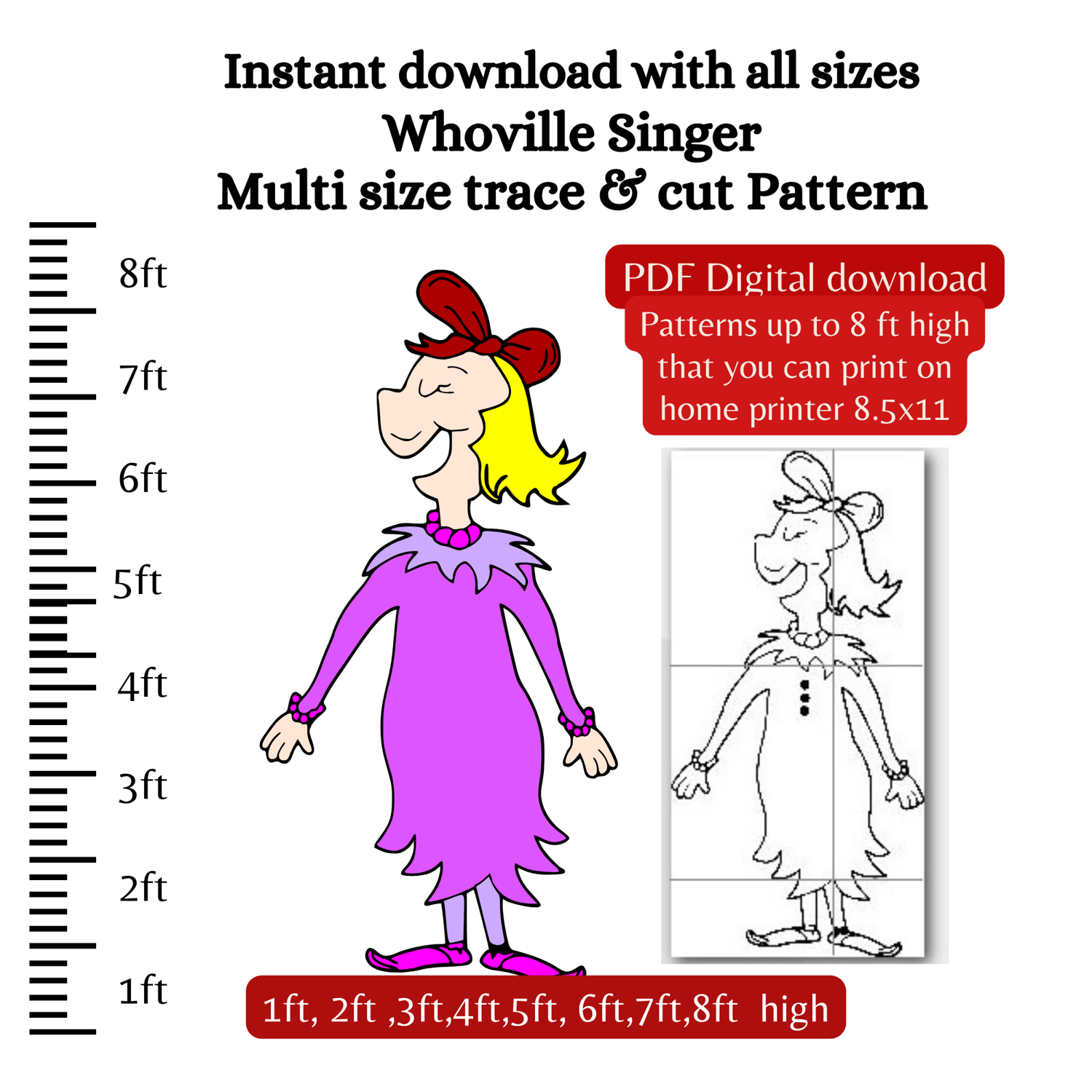 Life size, Large Whoville woman christmas caroler, pattern, 1ft 2ft 3ft 4ft, 5ft, 6ft 7ft 8ft, silhouette Template stencil pattern, Christmas village scene, print trace & cut pattern, Xmas yard art, trace and create Décor, Digital Download