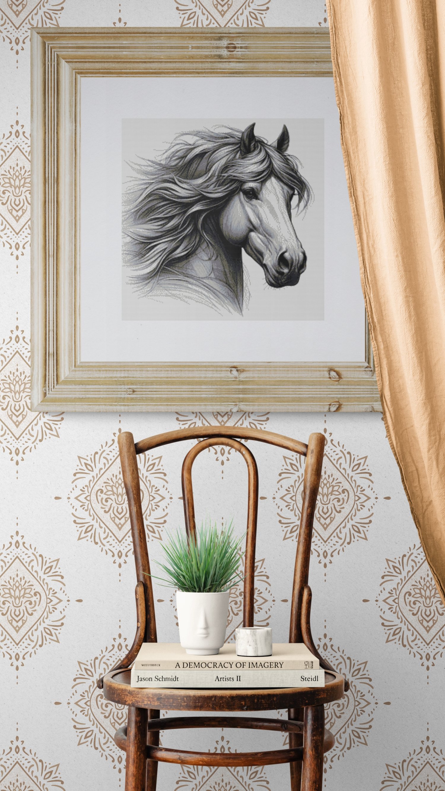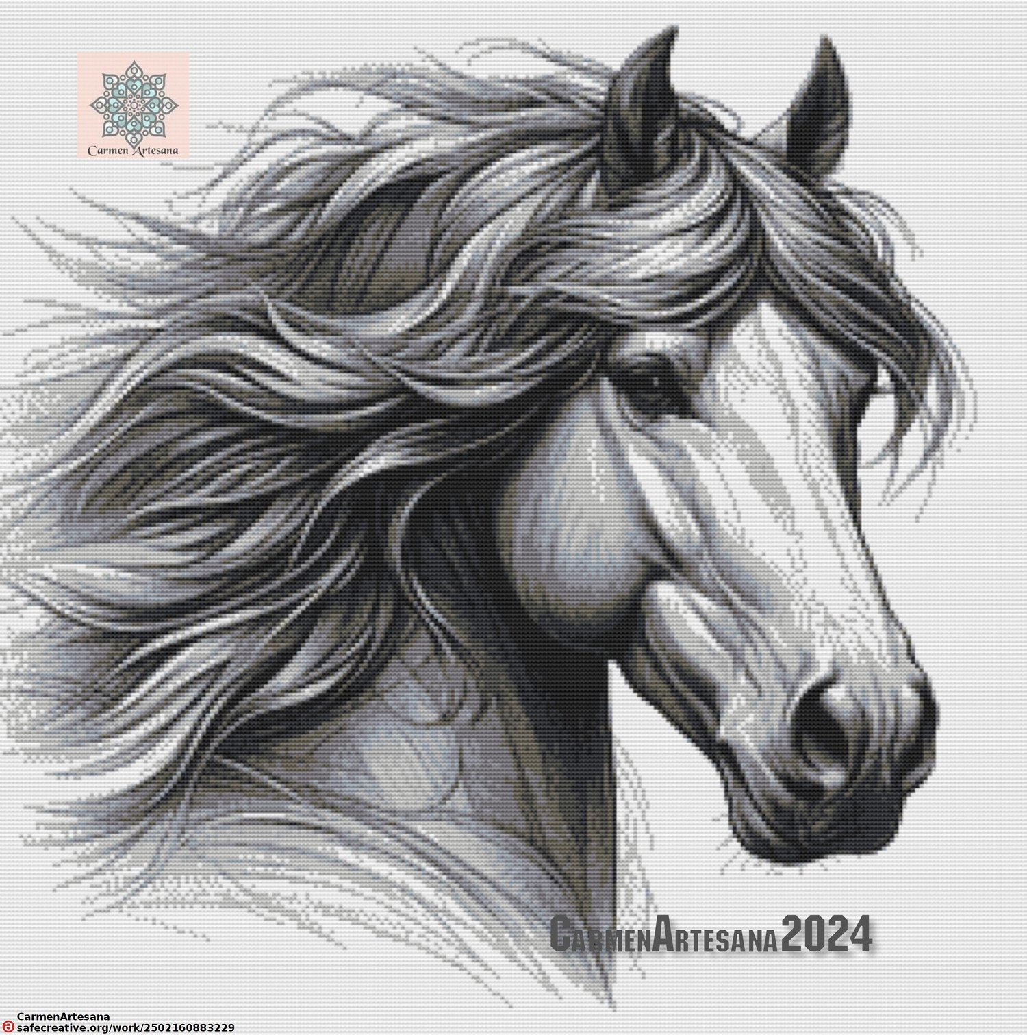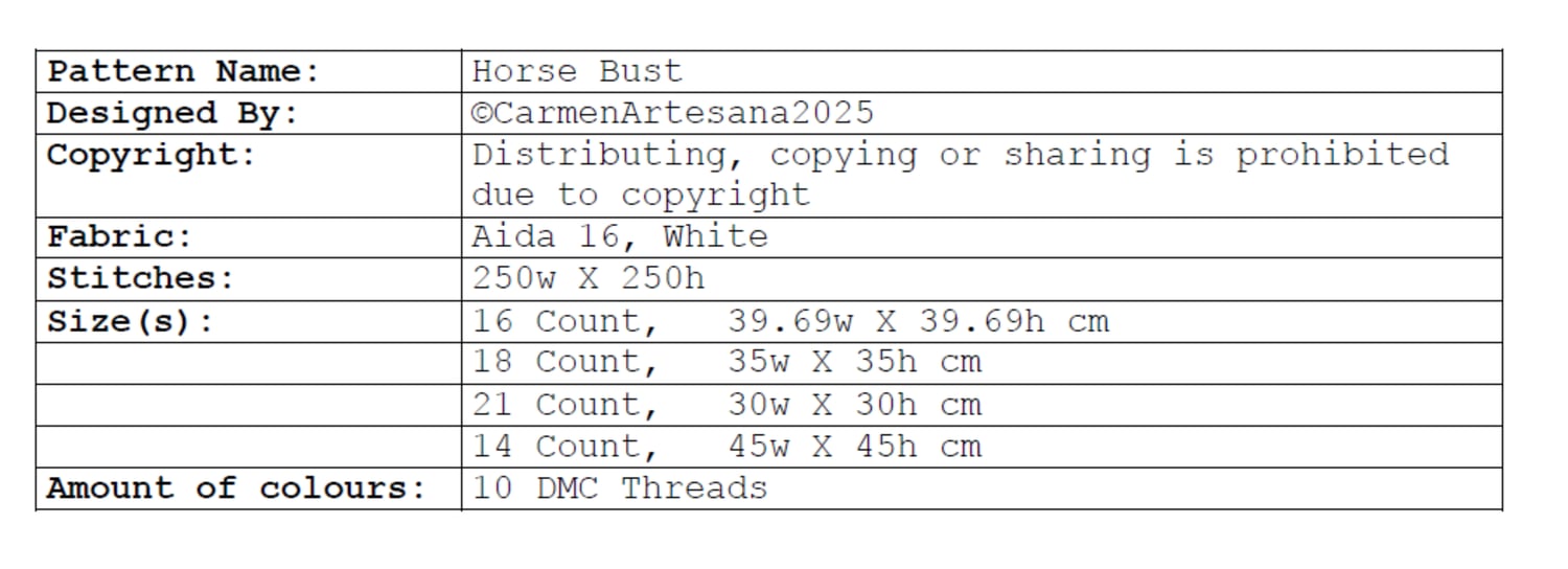 PDF cross stitch pattern, HORSE BUST 2, instant download, Dmc Threads