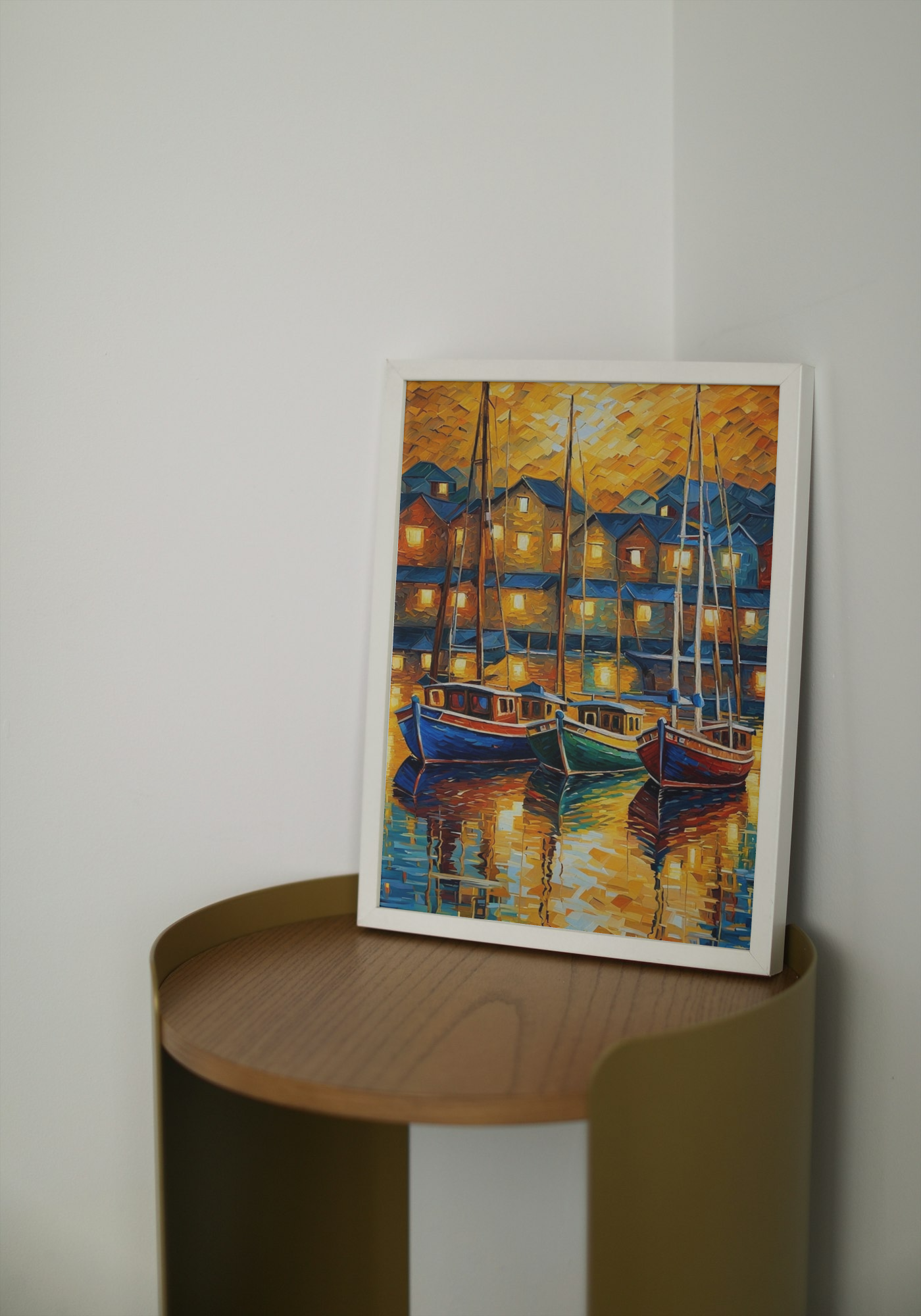 Add a touch of calm and coastal charm to your decor with this Three Boats on Still Water digital wall art. In a peaceful neo-impressionist style, this high-quality artwork captures three quiet boats gently resting on glassy water, bathed in soft light and textured color. Perfect for evoking serenity and subtle sophistication in any space.