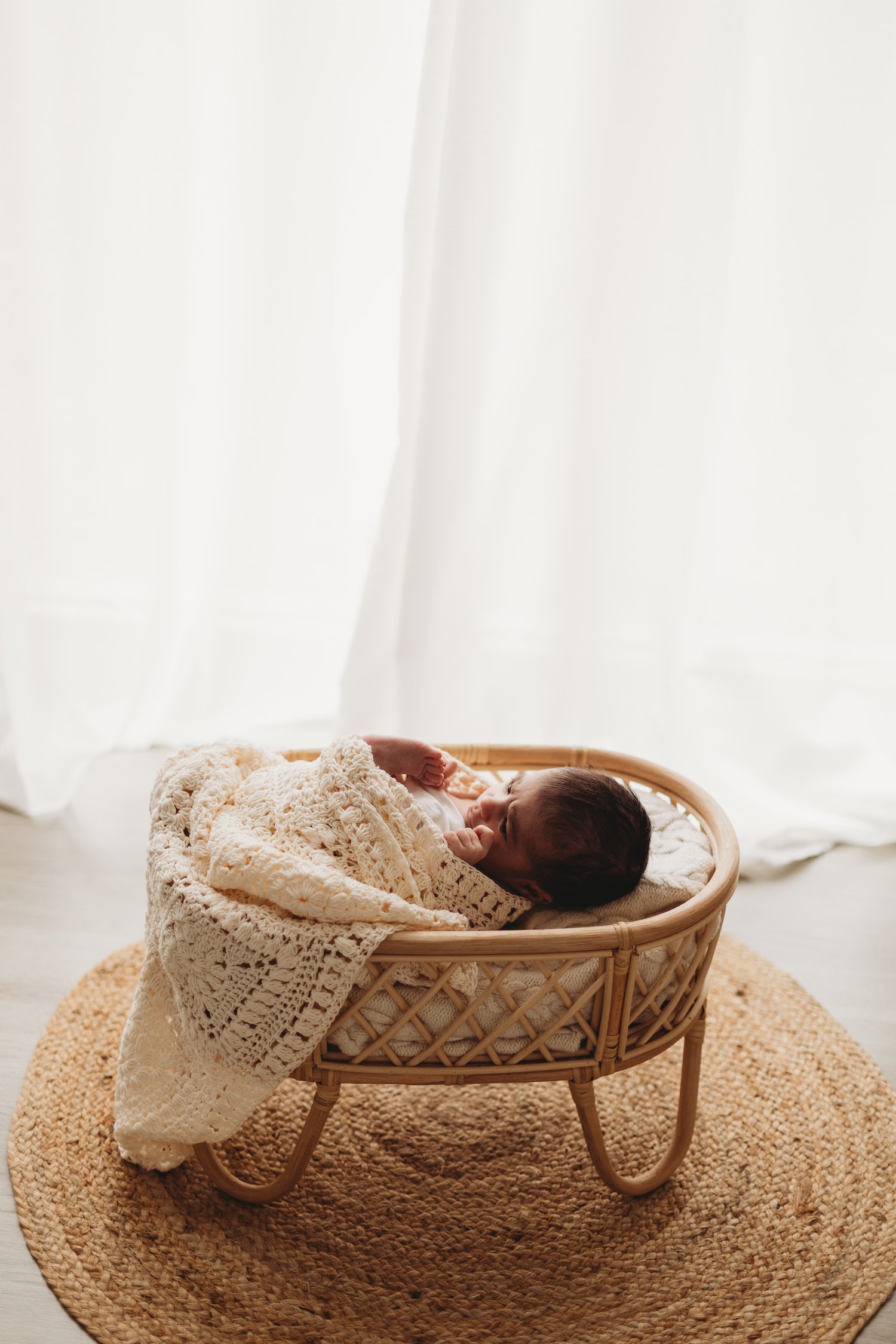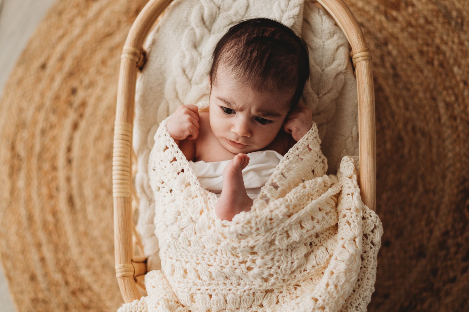 Timeless spring-summer baby blanket crochet pattern in granny square technique, includes: