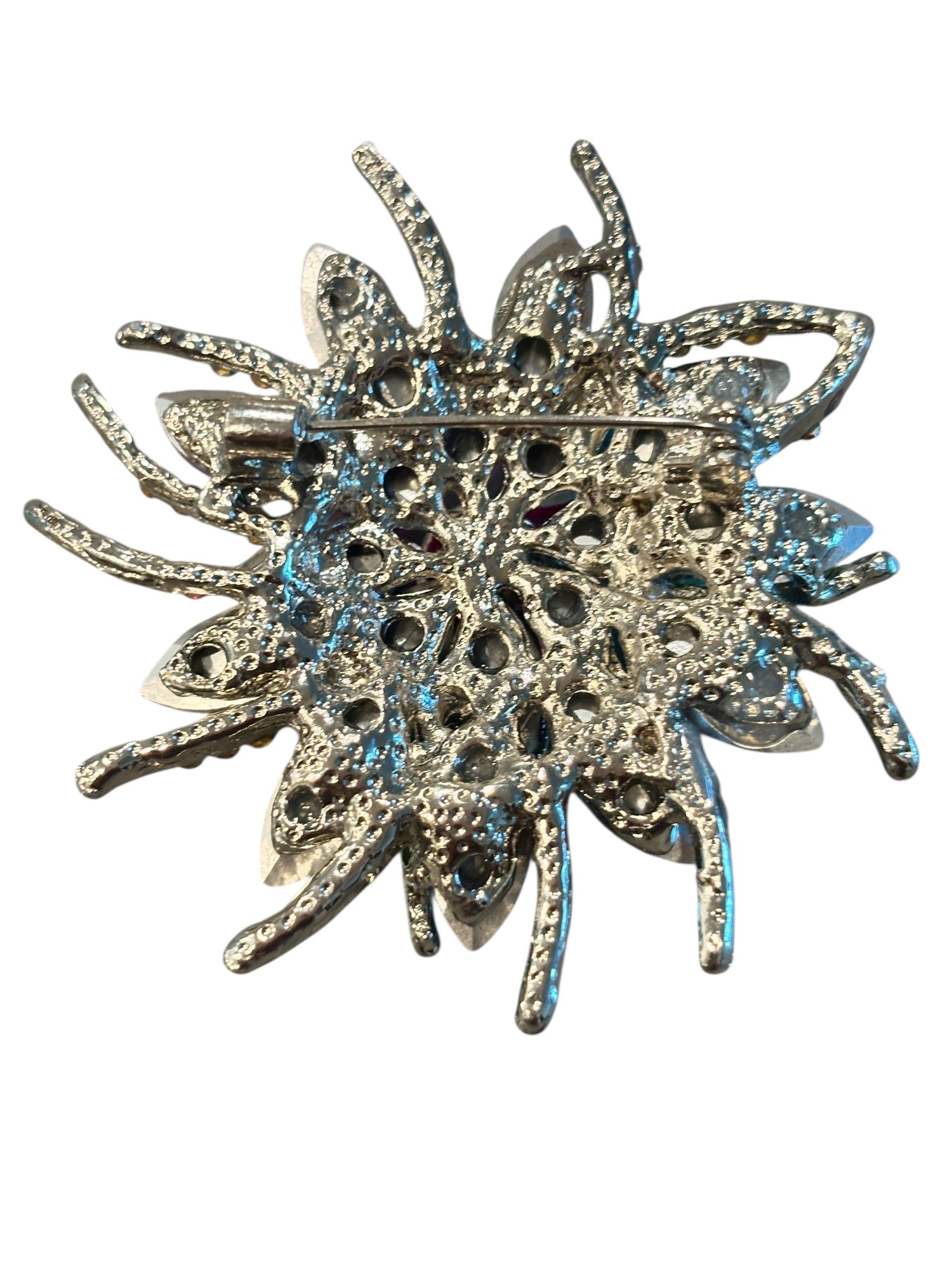 Radiant floral burst featuring marquise-cut multicolor stones and crystal accents. Fun, bold, and full of sparkle.