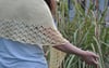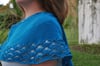 The Springwater Shawl is a crescent-shaped shawl constructed from the top down. The shawl starts with simple stockinette stitch and is finished with a feminine lace edge.