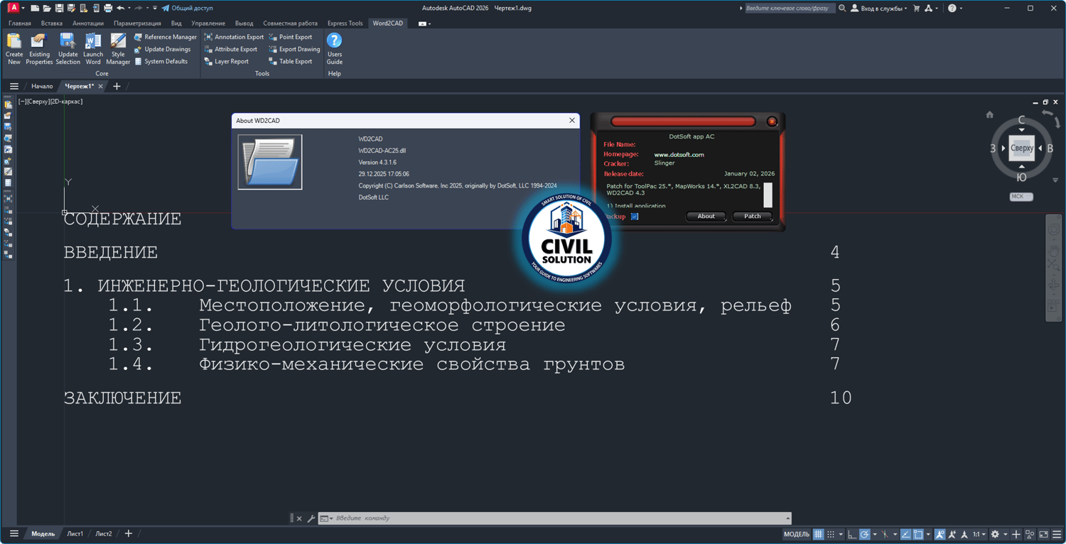 ๐ Carlson (ex. DotSoft)ย WD2CAD v4.3.1.6 overcomes the limits and problems associated with OLE placement of Microsoft Word documents into AutoCAD, BricsCAD and IntelliCAD. It draws the document using native geometry so the result is a bound collection of mtext (and table) objects that is linked to the original document, can be plotted without problems and is highly portable to other users. We added support for Word Tables (even those including merged rows and columns) as well as inline images (bitmaps). Also, numerous refinements to existing tools and faster processing.