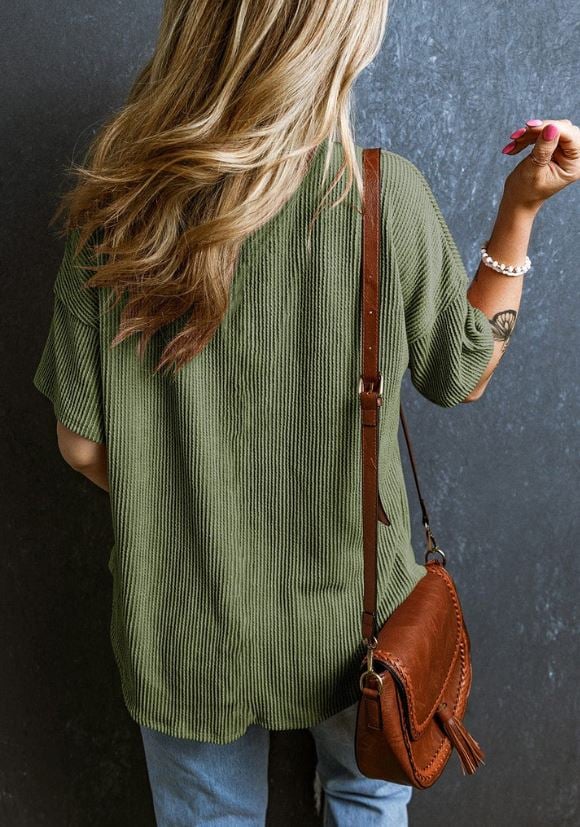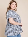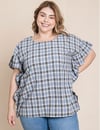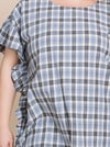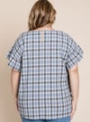 Cotton Yarn Dyed Checker Ruffle Sleeve Top - Blue / $18.99