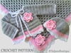 Crochet PATTERN baby blanket, hat and cardigan set decorated with crochet flowers and pearl beads. ♥♥♥