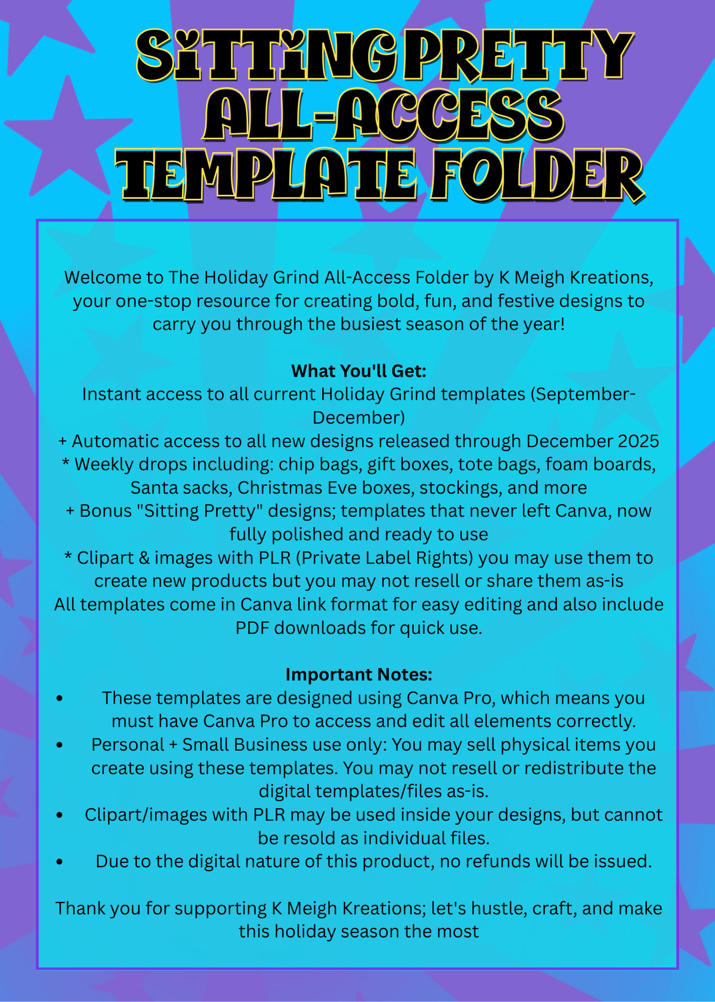 From September to December, you’ll get every single new template, design, and bundle I release — instantly added to your All Access folder. That means you’ll always be stocked with the freshest drops, ready to sell or create with.
