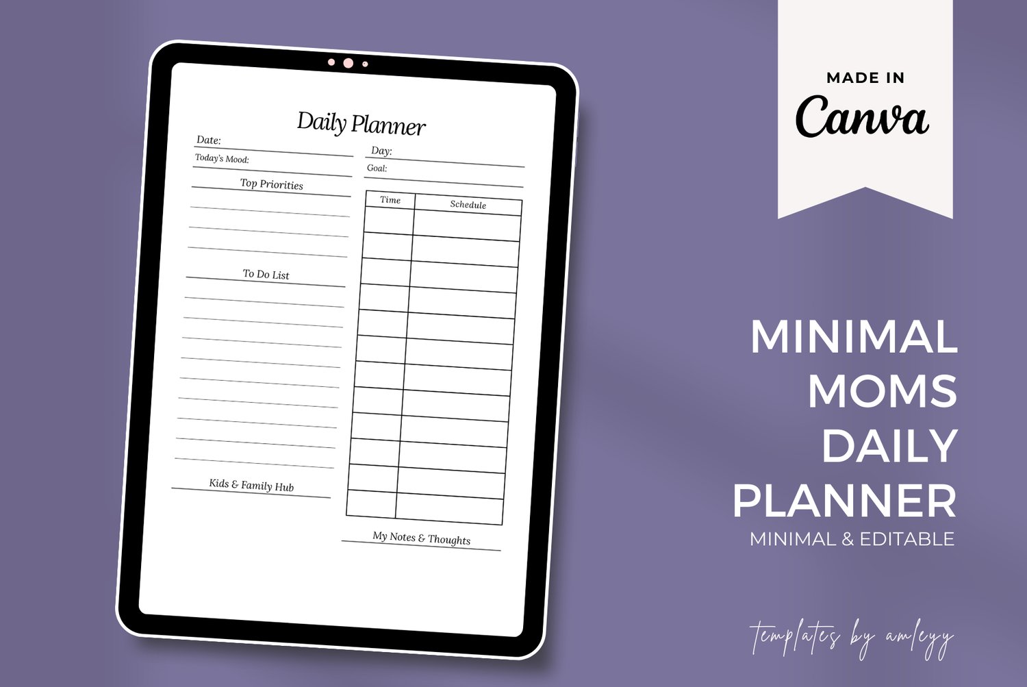 Stay organized without overwhelm with this Minimal Mom Daily Planner Template, designed especially for busy moms who love clean, simple, and functional planning. This minimalist daily planner helps you manage your schedule, tasks, and priorities with ease — whether you prefer printing or using it digitally.