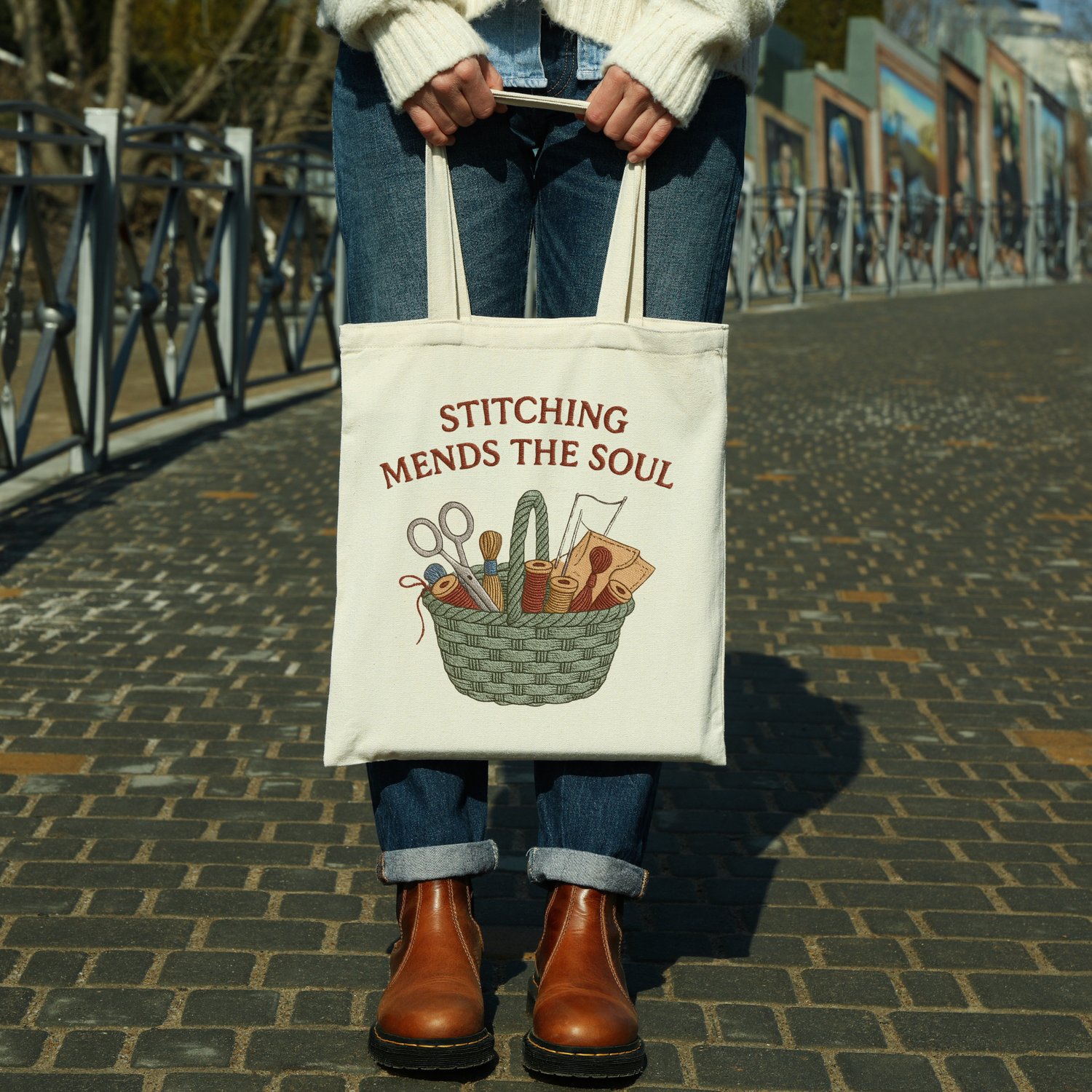 Stitching Mends The Soul Embroidery Design | Sewing Basket Quote | Craft Lover Machine Embroidery File | Pes Dst File | Digital Download