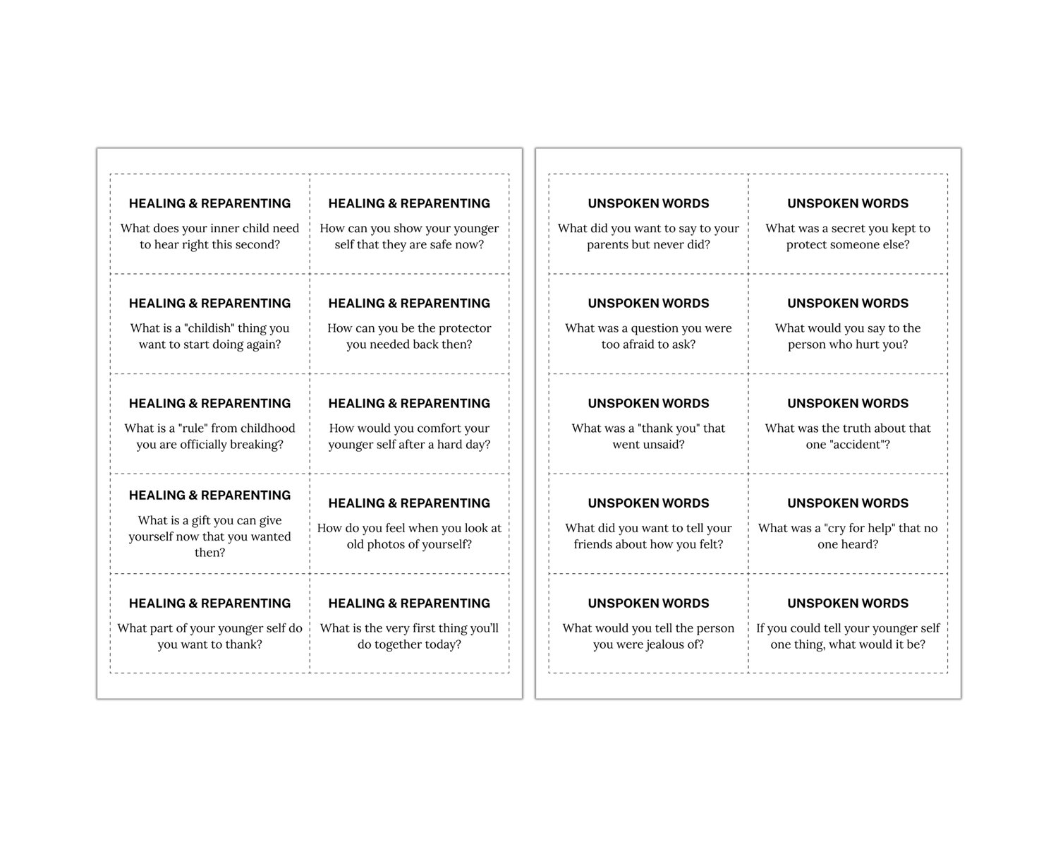 Inner Child Conversation Cards, Reparenting, Childhood Trauma, Shadow Work, Trauma Healing, Self Care, Self Discovery, Reflection Cards