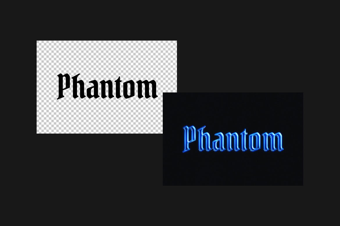 Glowing, neon-blue gothic style that gives the word Phantom an ethereal, supernatural presence. Looks like a title for a ghost-themed game, sci-fi fantasy, or dark supernatural story, with a striking, futuristic twist.