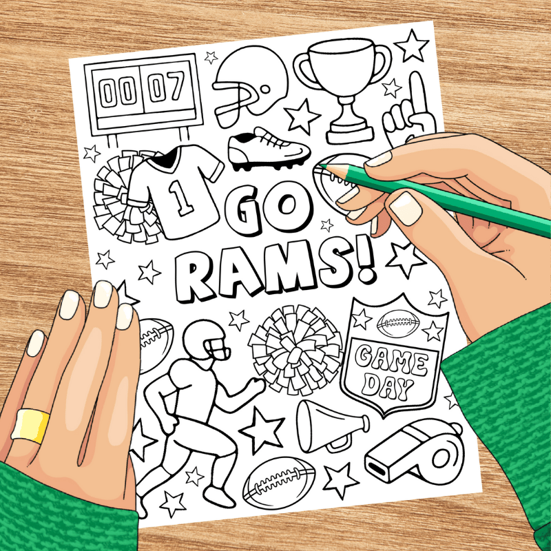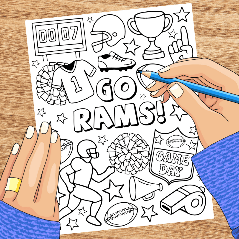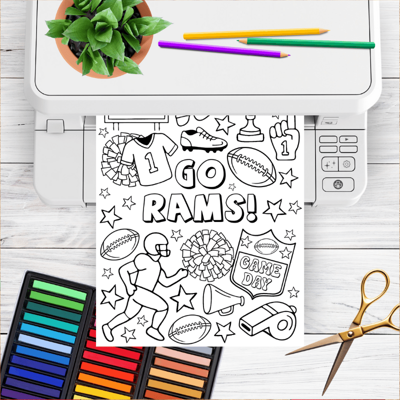 Go Rams! Football Team Coloring Page, Printable 8.5x11 Paper, PDF & PNG File, Game Day Crafts, LA Los Angeles