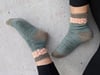 *The Innovator Socks are a sock version of the Projector Shawl. It features simple stripes to mimic the garter stripes used in the shawl and has the same lace pattern at the ankle. It’s a great way to use up the leftover yarn from the shawl.*