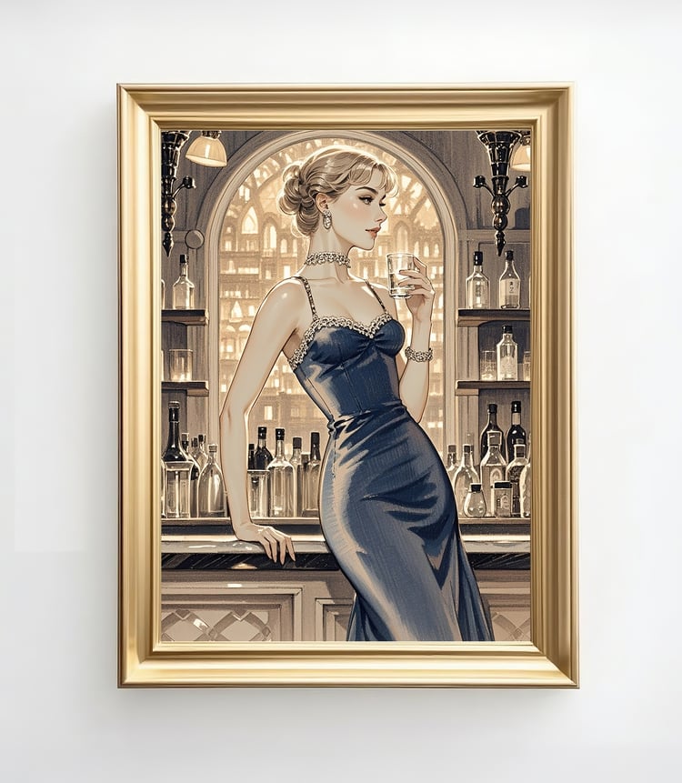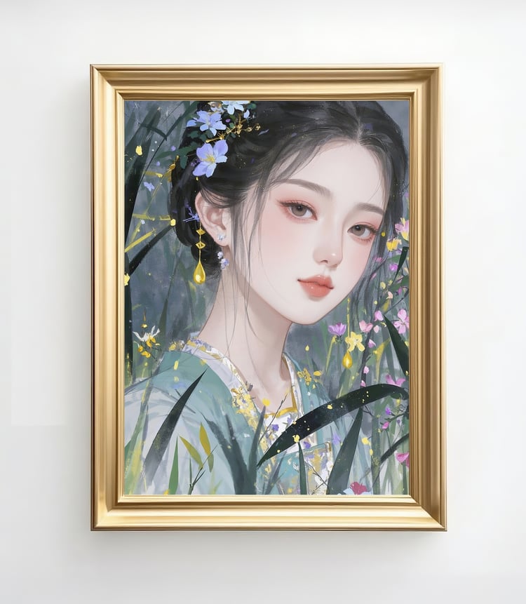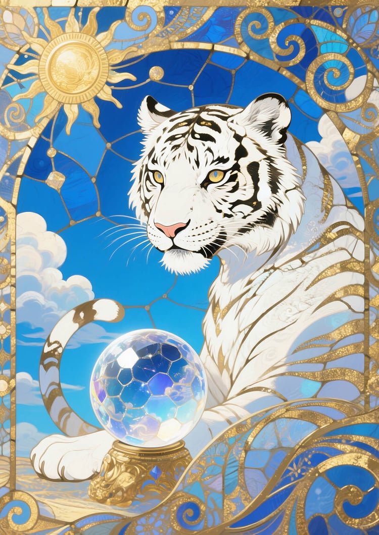 With Art Nouveau-inspired elegant flourishes, intricate detailing, vibrant gold and blue tones, stained-glass-like effects, and a magical, surreal atmosphere â this piece is ideal for enhancing wealth luck and positive energy.