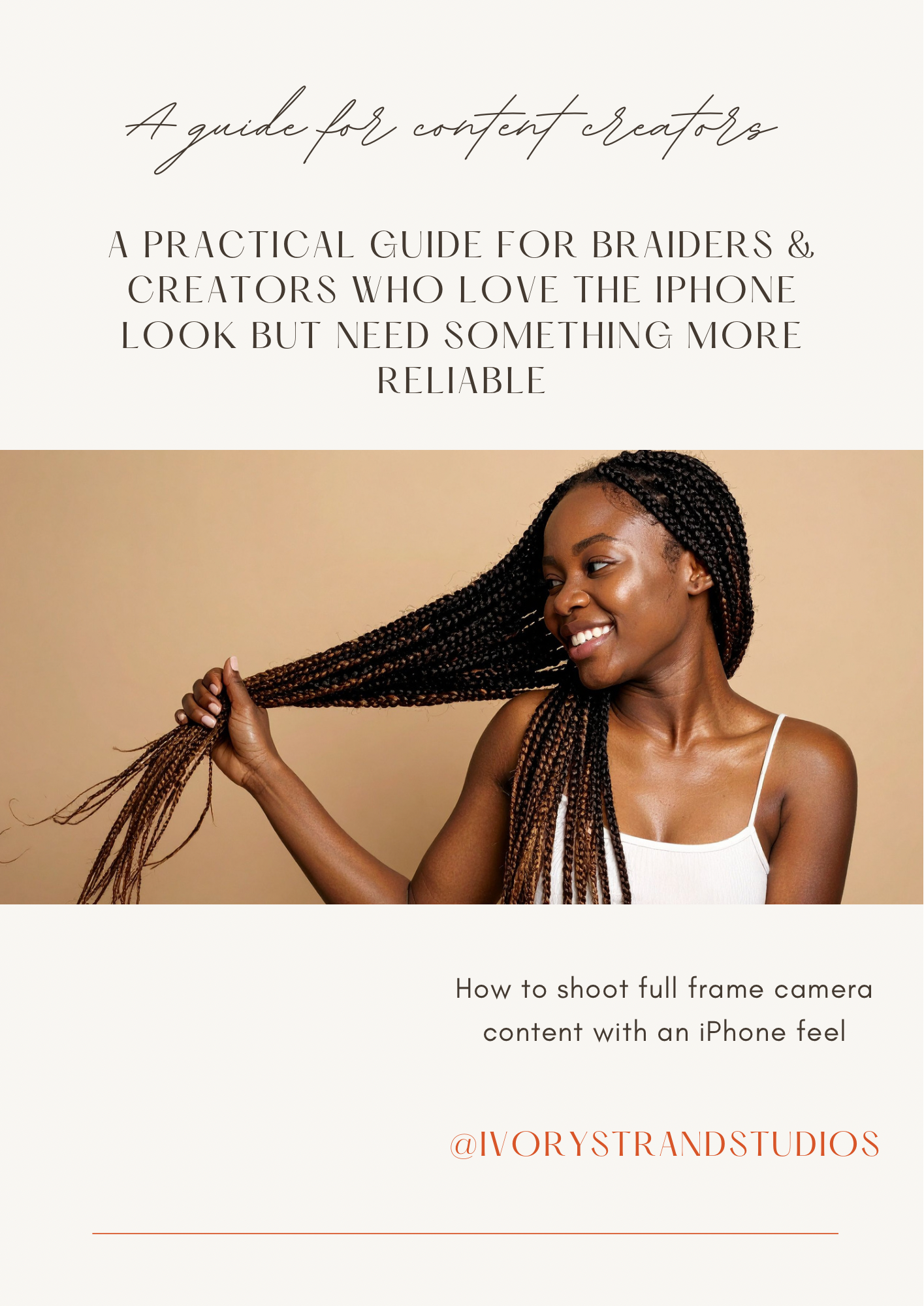 Designed specifically for braiders, beauty creators, and salon owners, this PDF breaks down the full setup I use inside my suite to achieve clean, natural, scroll‑friendly video that still feels like the iPhone but with better sharpness, better color, and zero unpredictability.
