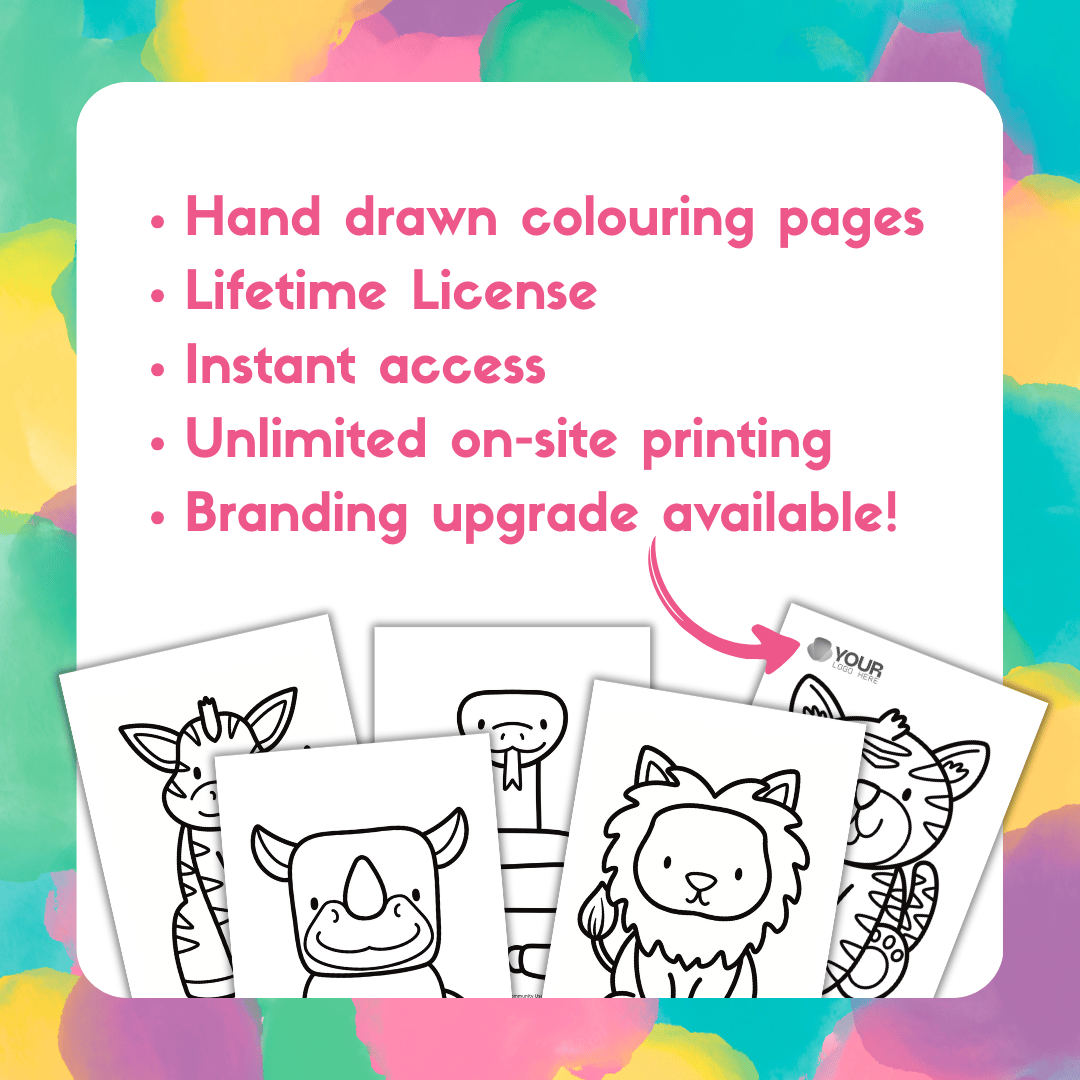 Add the Branding Upgrade and we will apply your logo to the bundle, making sure the line art, logo and licensing information fits neatly on each page. This upgrade allows for one (1) logo to be added to the existing line art colouring page. You will receive the original file of 5 colouring pages directly (with no logo). Please send us your logo via email as a PNG or SVG file. Upgrading your file generally requires 2 business days. Please allow up to 5 business days during busy periods. We will then email your upgraded file with your logo to you as a PDF print ready file.