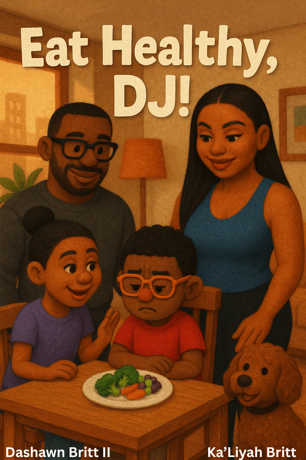 "Eat Your Vegetables, DJ" is a fun and heartwarming children's book that follows a curious 3-year-old named DJ as he discovers the world of vegetables with help from his loving family. Set in a cozy Bronx apartment, each page brings playful rhymes, colorful Muppet-style illustrations, and a gentle lesson about trying new foods.