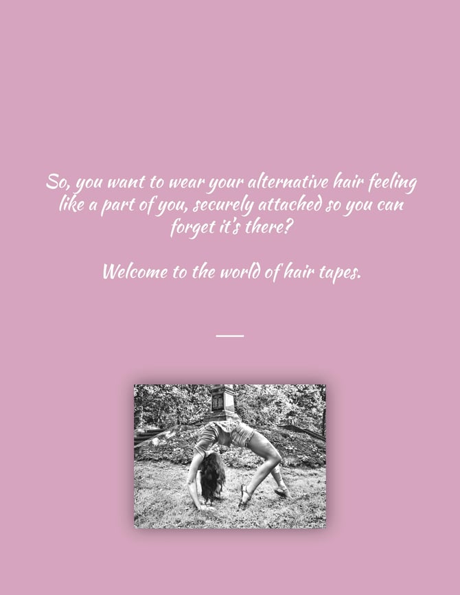 It has provided me with a very active lifestyle despite the hair loss. I have seen and read numerous topics on tapes and felt there was a need for one comprehensive teaching material, which breaks down the process and makes it easy to follow and understand. Over the years there have been numerous people I have shared these tips and tricks with and helped them find their own tape security. For the very same reason, this teaching material was born - to help as many people wearing hair as possible.