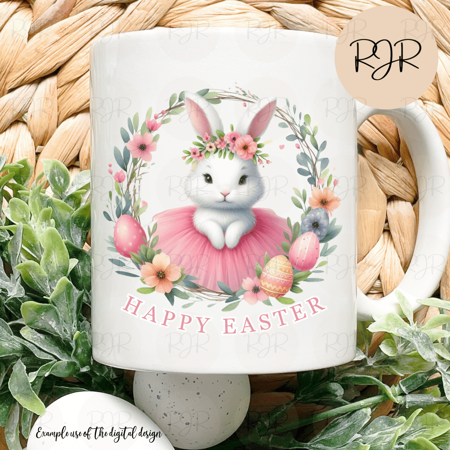 Beautiful Rabbit in Pink Easter Wreath