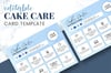 The Editable Cake Care Card uses as Cake Care Guide, Wedding Cake Care, Cake Care Card, Cake Care Card Template, Cake Serving Guide, Canva Editable Wedding Cake Care Card, and an easy-to-use template for printing out additional cards.