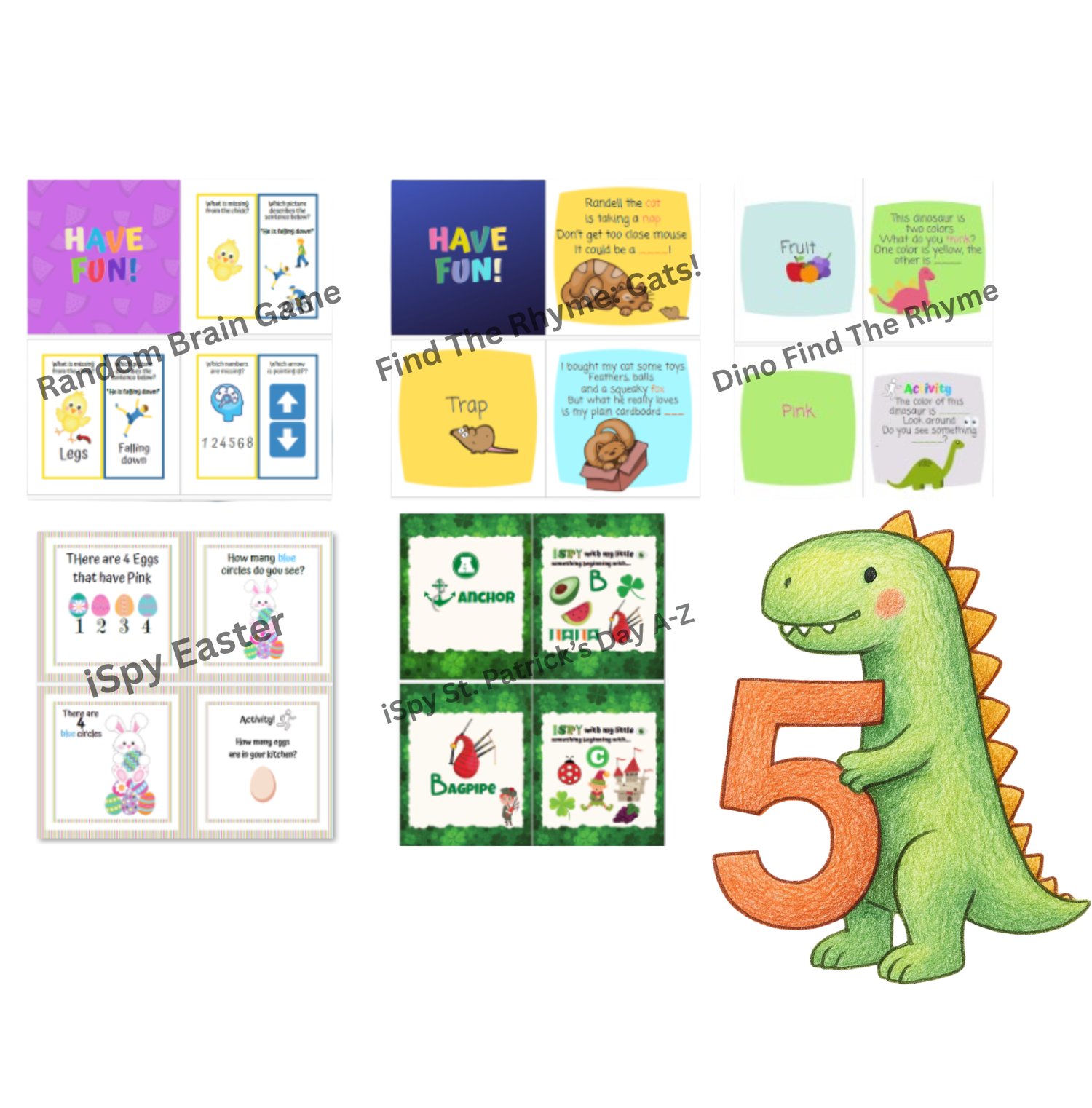 Kids Activity Ebook Bundle - 5 Printable Ebooks PDF (Rhyming, I Spy, Brain Games)
