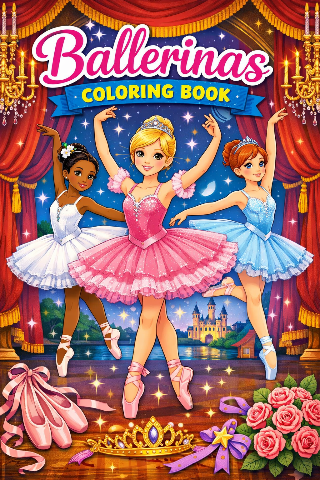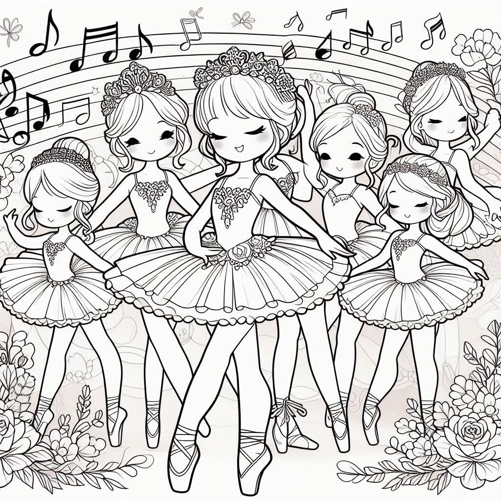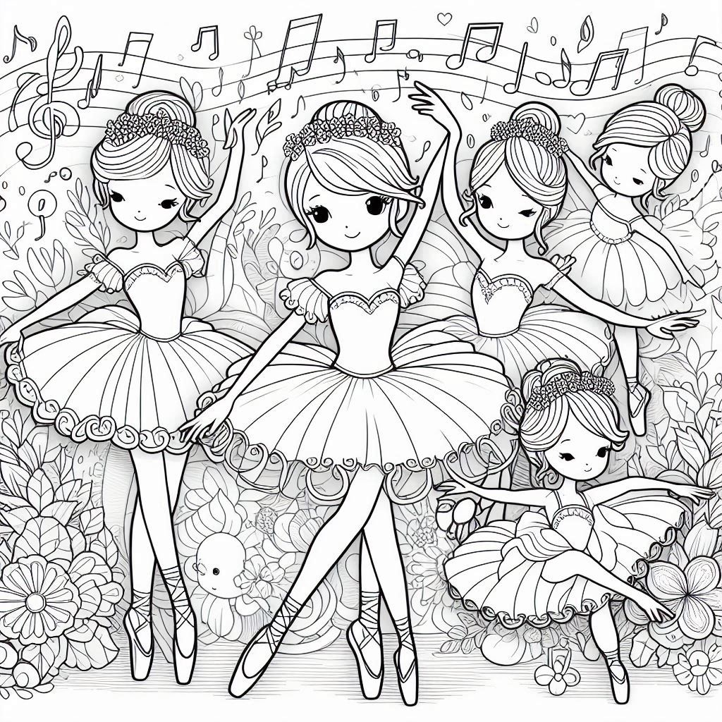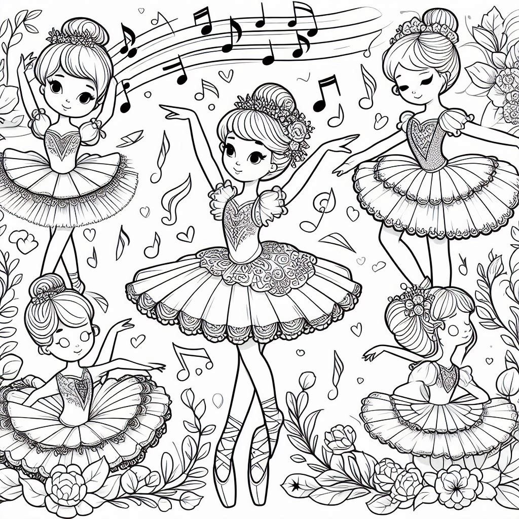 Ballerinas, grey scale, coloring ebook, 80 pages, digital product, instantly download.