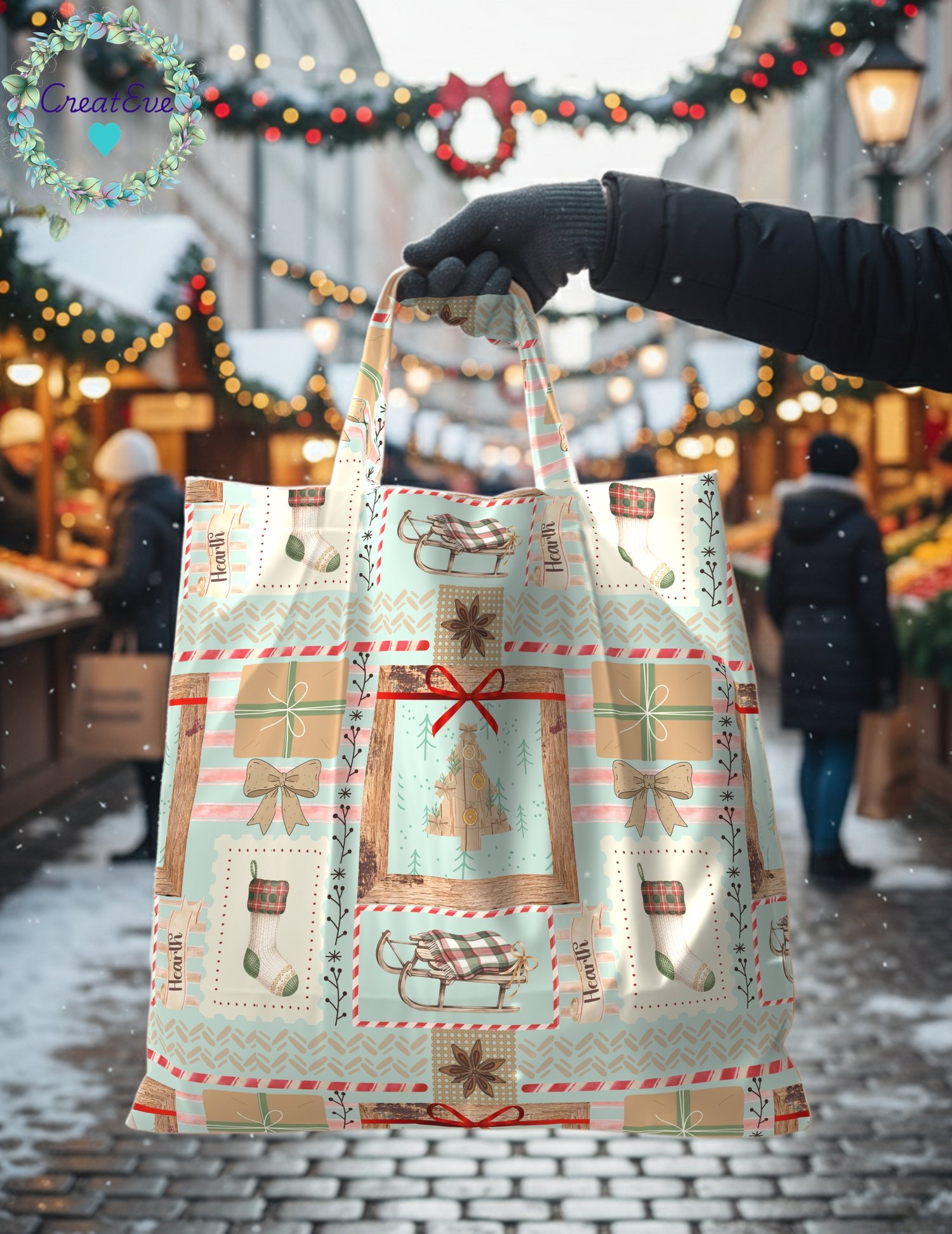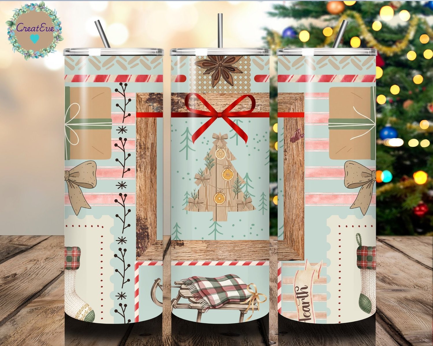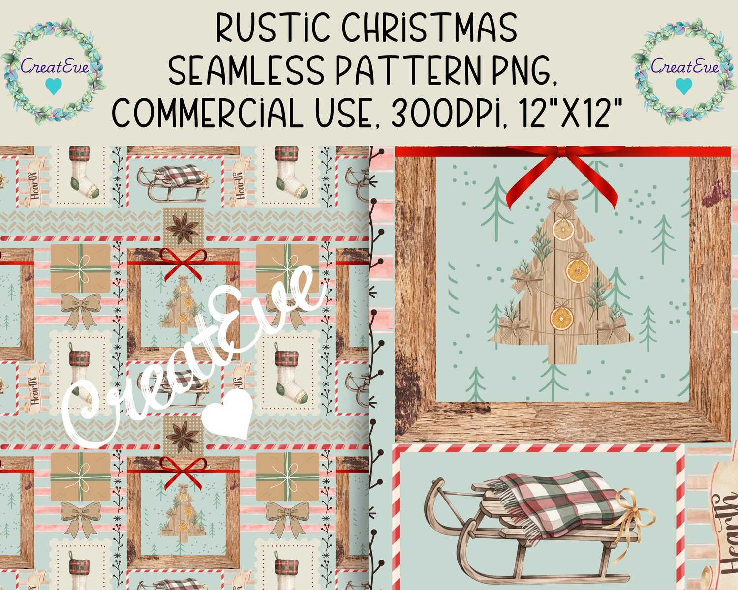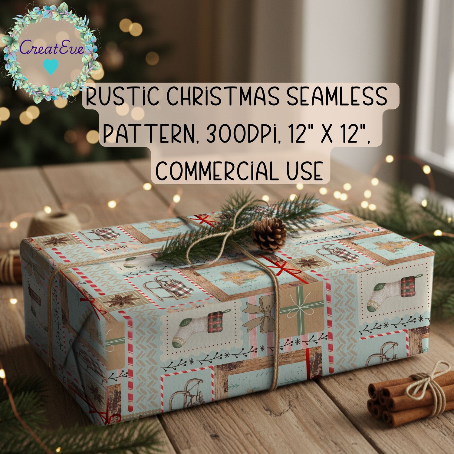 Rustic Collage Style Christmas Seamless Pattern, 300dpi, 12" x 12", Commercial Use
