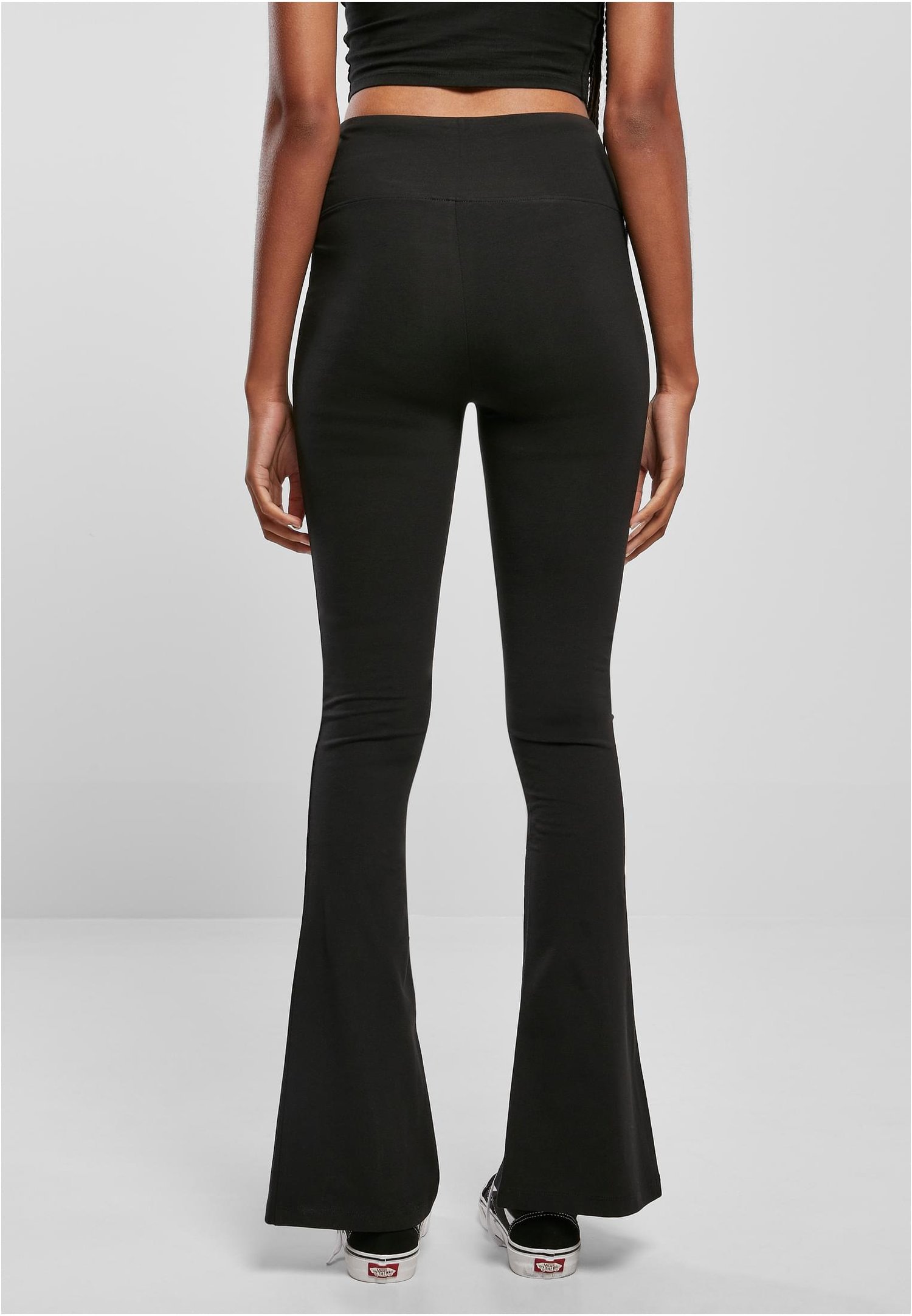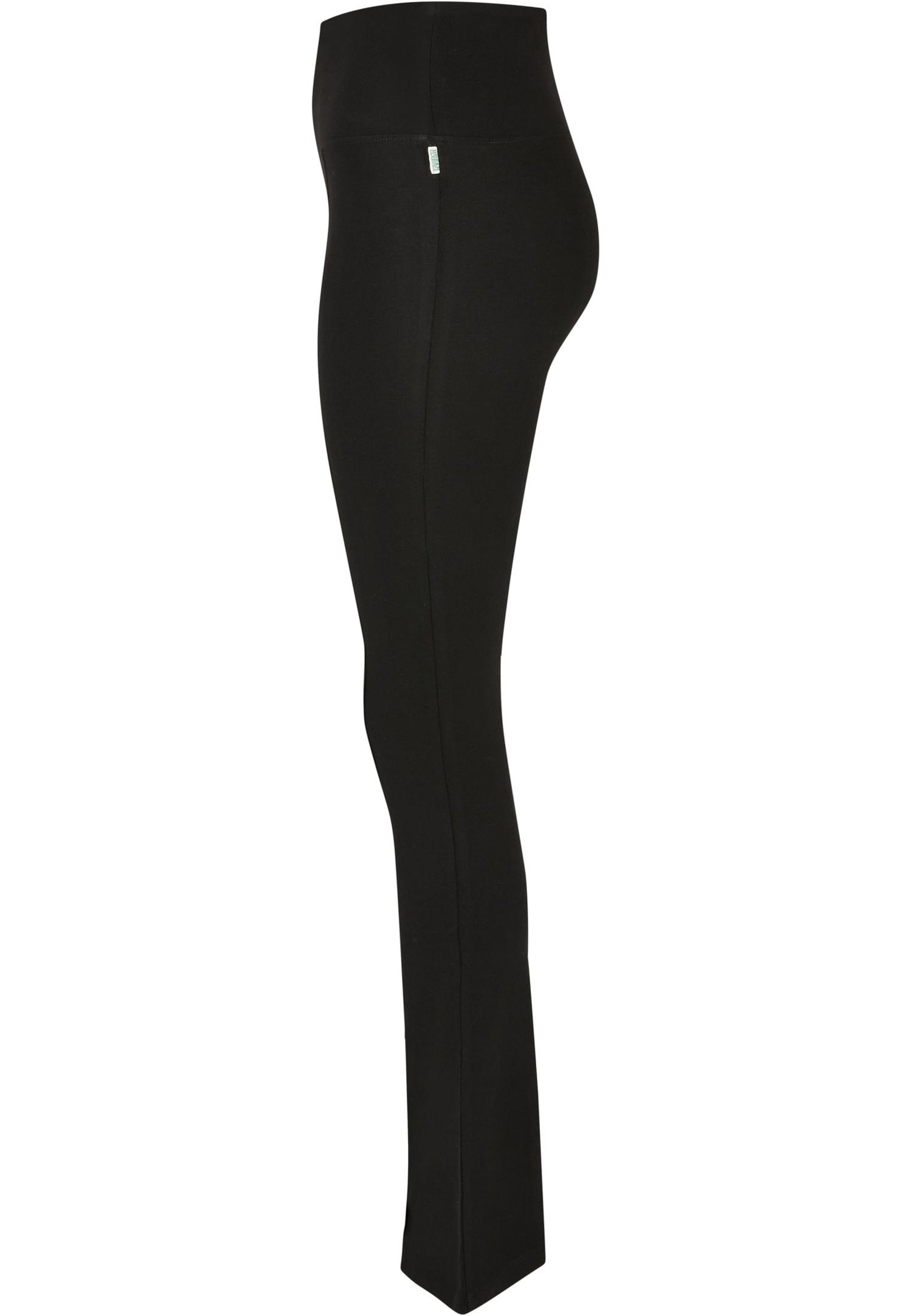 Sporty ladies pants that offer a high, elastic waistband and a very comfy stretch jersey fabric with organic cotton – culminating in a clean look with best wearing comfort. A proper labeling shows the quality of the material. The cut of the leggings is a proven slim fit. Urban style is being ensured by the flared legs, which are slightly slit on the front.