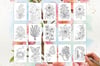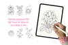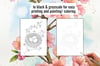 Each design comes in two versions: a crisp black outline and a soft greyscale version. Print them on watercolor paper and paint directly onto the page, or use the greyscale version for gentle coloring. The matching transparent PNG digi stamps work beautifully in Procreate, Photoshop, or any digital art app for card-making, junk journaling, and mixed media projects.