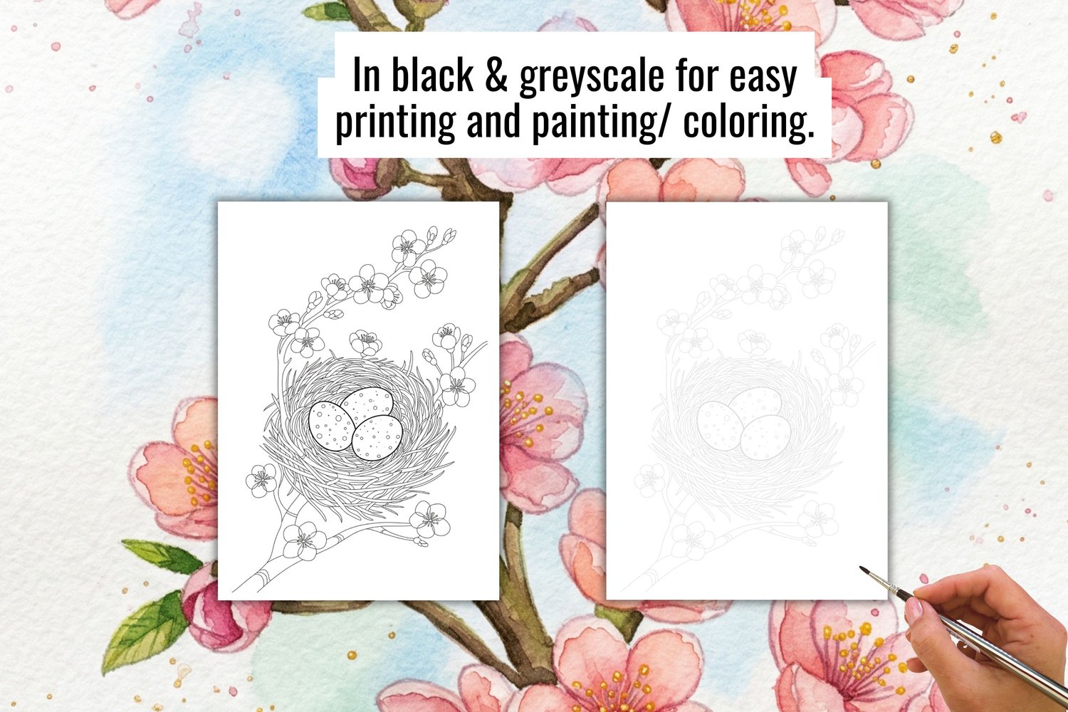 - 38 spring botanical designs (black + greyscale = 76 printable pages)