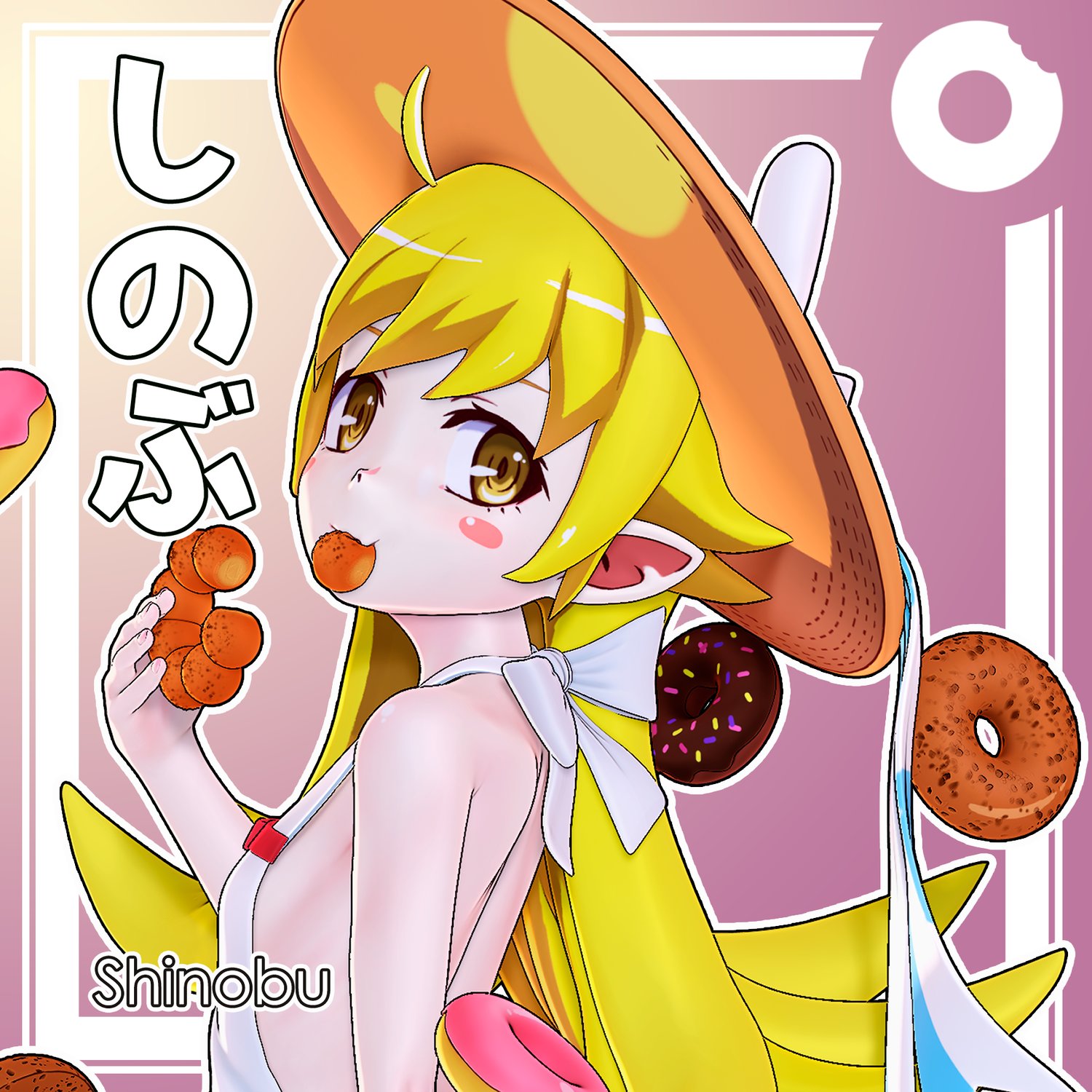 This jpg set includes 50+ 3k+ resolution jpg renders of Shinobu in two poses, a cute jumping one and a posed look with the characteristic neck turn of the series. Both include lots of variations such as different outfits and accessories (dress and bikini).