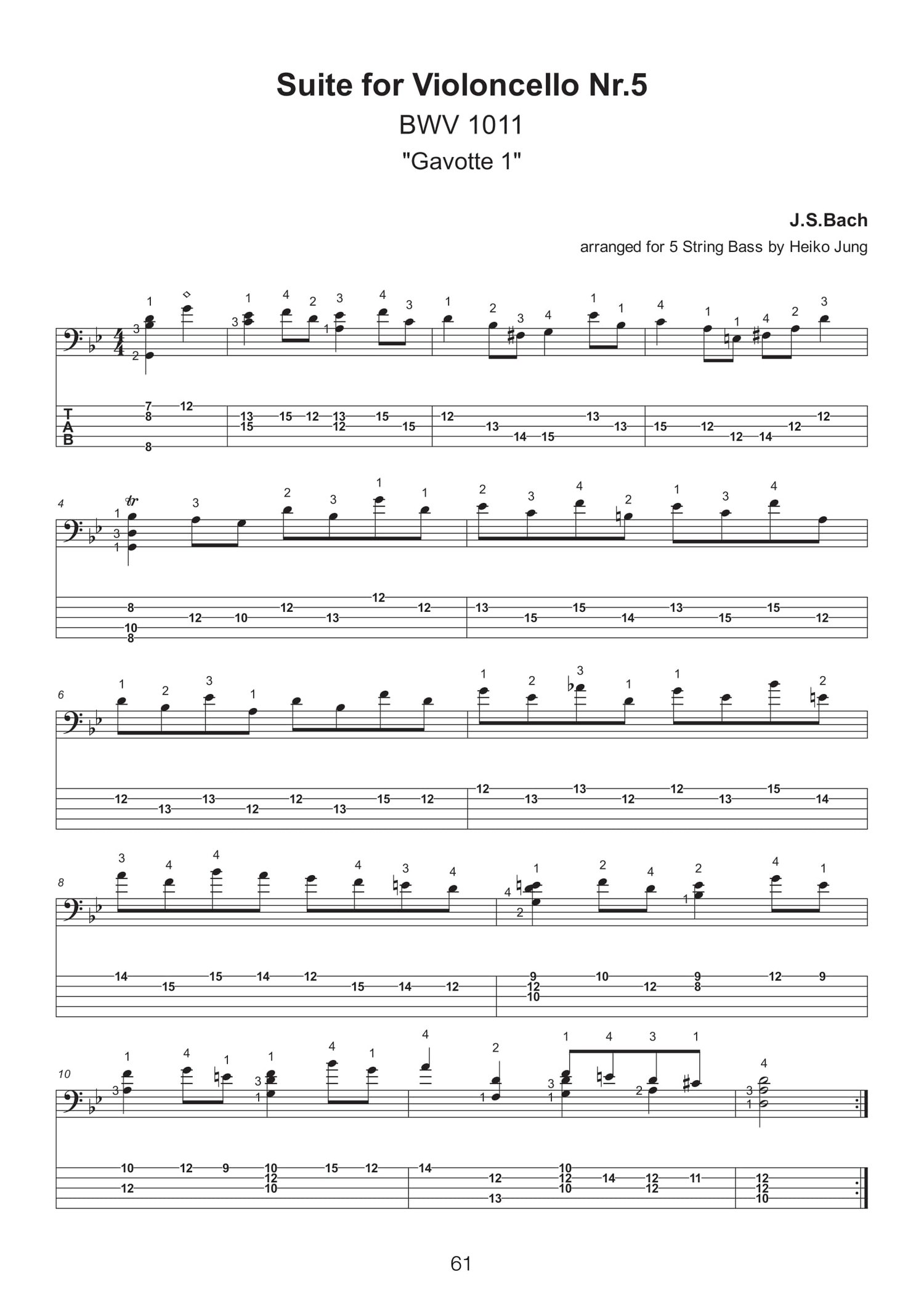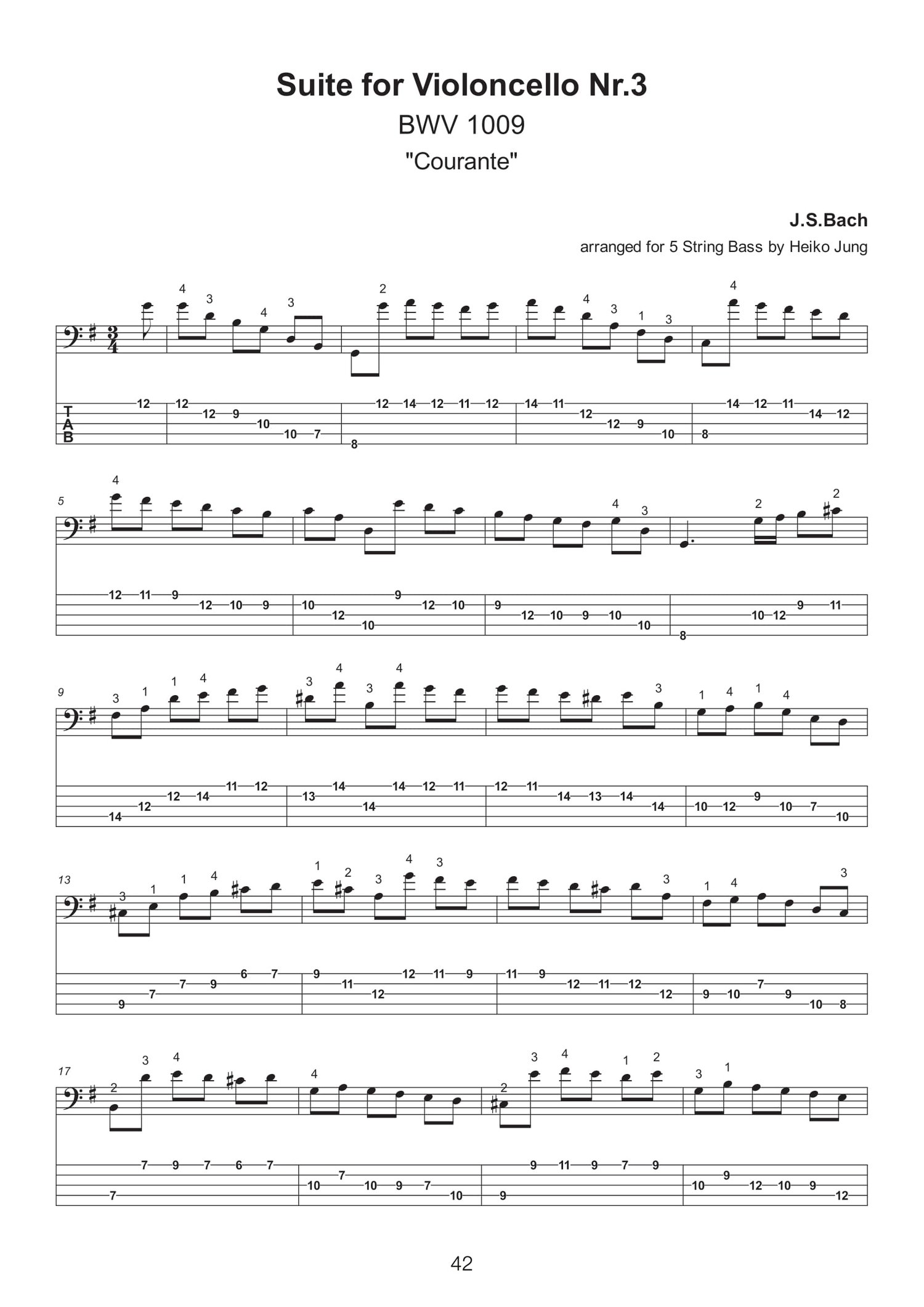 With this ebook, I am glad to present a selection of twenty solo pieces arranged for 5 String Bass that were taken from the repertoire of the famous "Six suites for violoncello solo" by Johann Sebastian Bach. In addition to the entire Suites No.1 and No.3, you will also find excerpts from Suites No.2, No.4 and No.5.