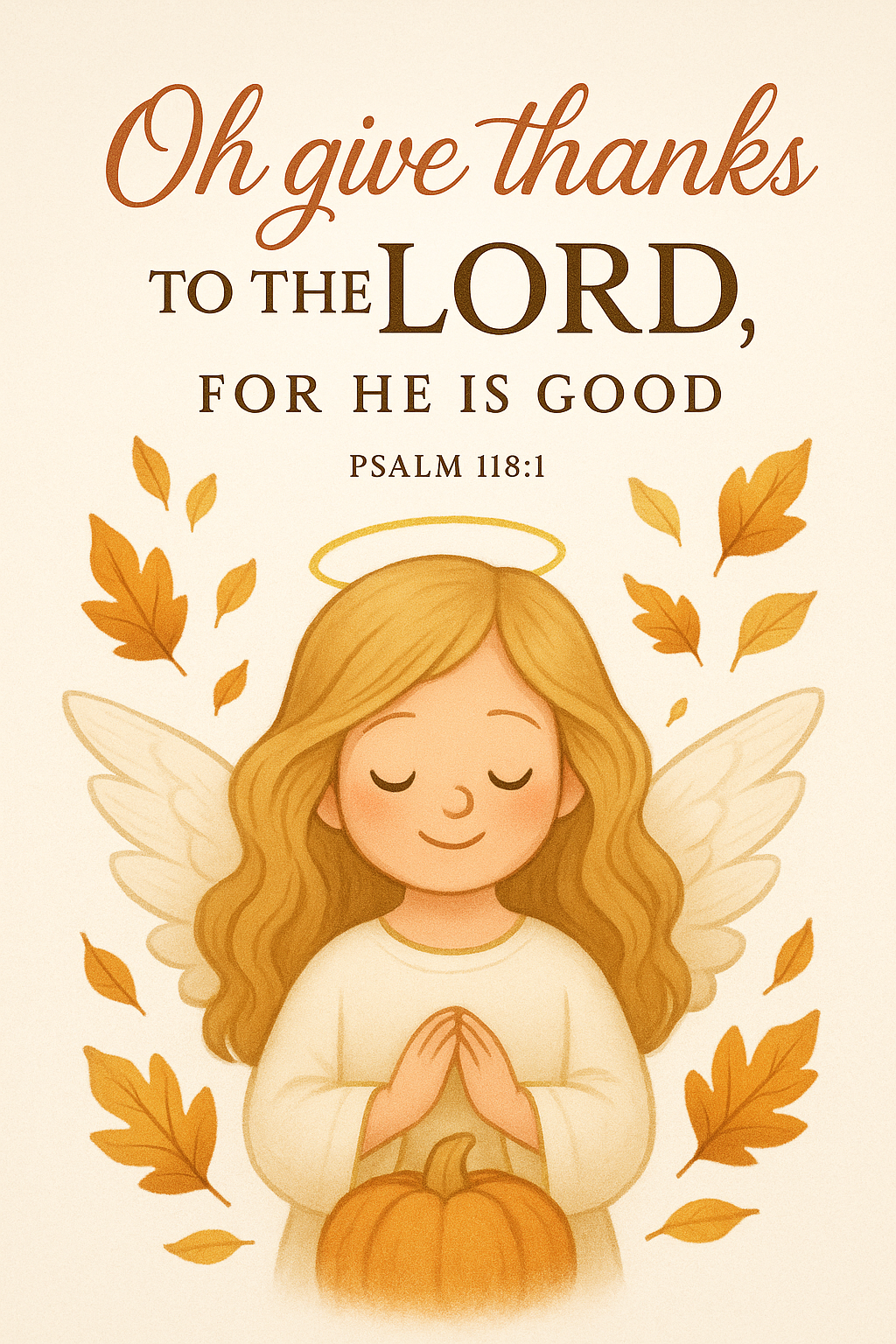👼 Oh Give Thanks – Psalm 118:1 Autumn Angel Poster