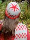 The Hat: A lattice-like band circles the brim and a bright star graces the crown. Depending on the colors used, the design is appropriate for men, women, or children. The hat includes six sizes from baby through XL adult. The hat is worked in the round from the bottom up. The only skills you need are knit and purl, following a colorwork pattern, and decreasing. The colorwork pattern is provided in charted form only.