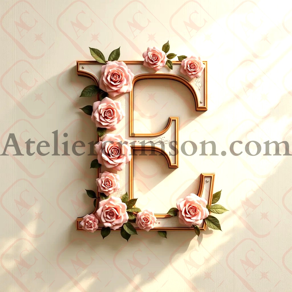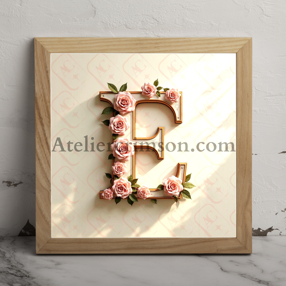 The letter E soft beige wood and flowers