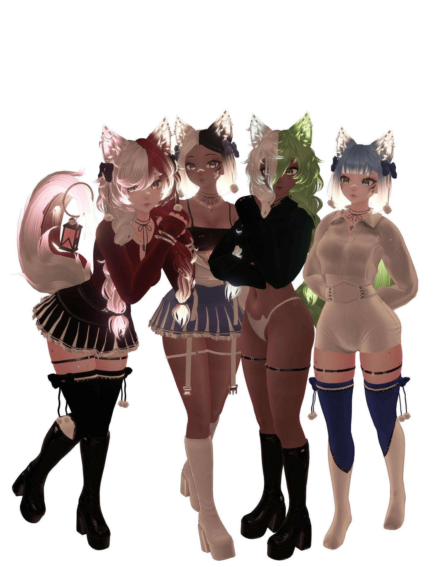 head : Starlynn (edited by me and help by Nepvr) DO NOT REUSE. -body : Zinpia (sugs) (edit by Kindaso ♥) DO NOT REUSE - Body texture & face texture : Yingyangvr & LPB - facestripes : SaKuu__- tattoos : bunnie & SmolUni - hair front,braids, bangs : Minki short hair & bang : Saikura - hair textures : Sivka - eye texture : Krinuts & Fair- Skirt, socks, ribbons, corset : PastelAesthetic - Romper : Zinpia - Boots : Cupkake - Garters : Meeva - Ears : Winks - Tail : Darcyfbx - Underwear : Parsley77 - Jacket : Darcyfbx - Sweater : Velvet - Choker : Pettystore - arm fishnet : Kypher - Neckless, Bracelet : Darcyfbx