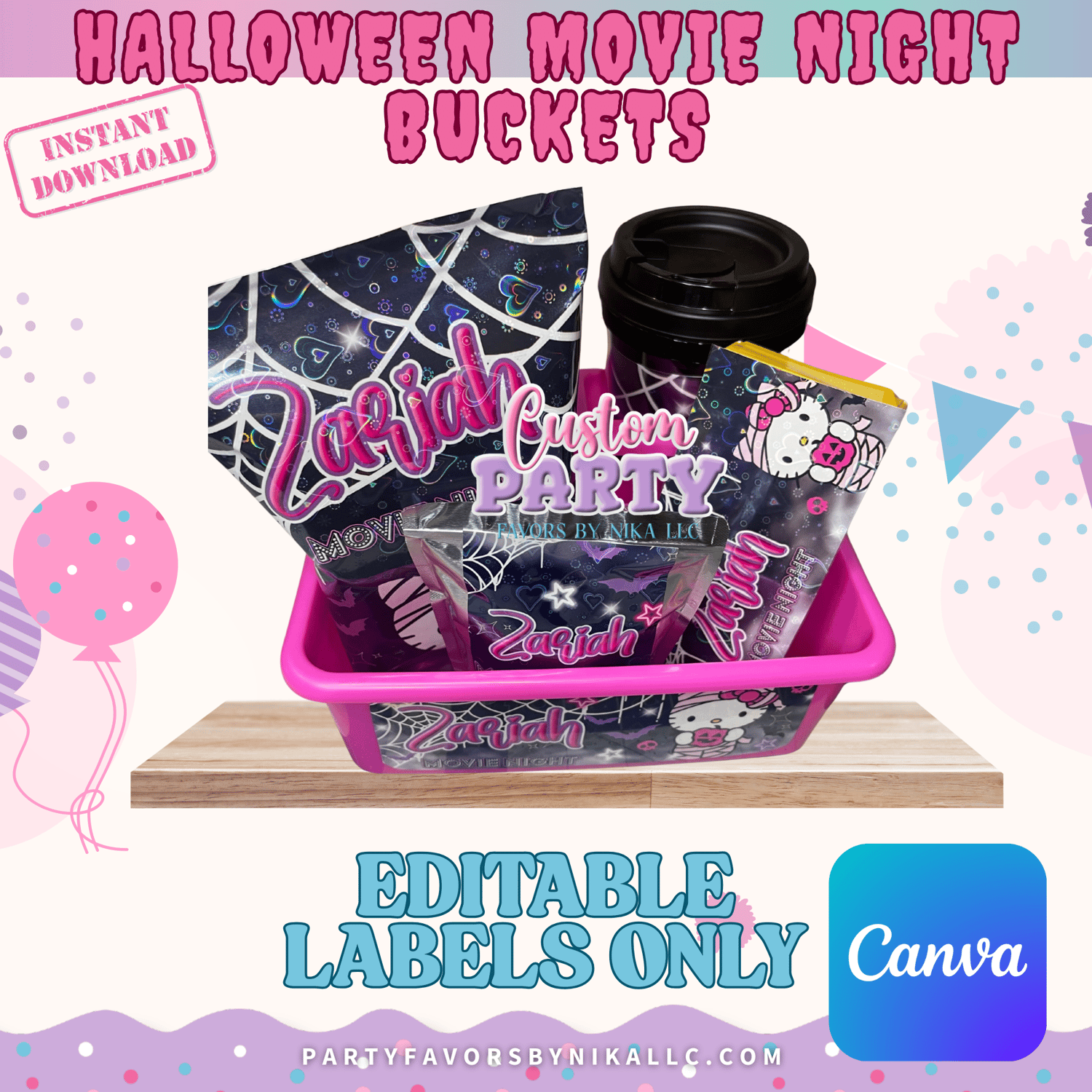 HALLOWEEN MOVIE NIGHT BUCKET LABELS