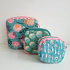 These little square pouches couldn't be sweeter! They come in 3 useful sizes that neatly fit inside one another. You'll have so much fun choosing different fabric combinations!