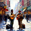 Experience the allure of busking in the city with our extraordinary AI-generated imagery today!