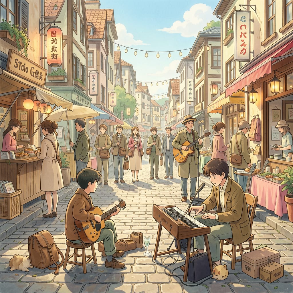 - Dynamic Scenes: Each image showcases a variety of performers, from musicians to magicians, set against the backdrop of bustling city streets. Feel the rhythm of the city pulse through these lively compositions.