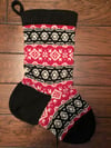 Mysig in Kiruna is a pattern for a knitted stocking for small gifts. It is worked in the round from the folded cuff down and using the Fair-Isle knitting technique.
