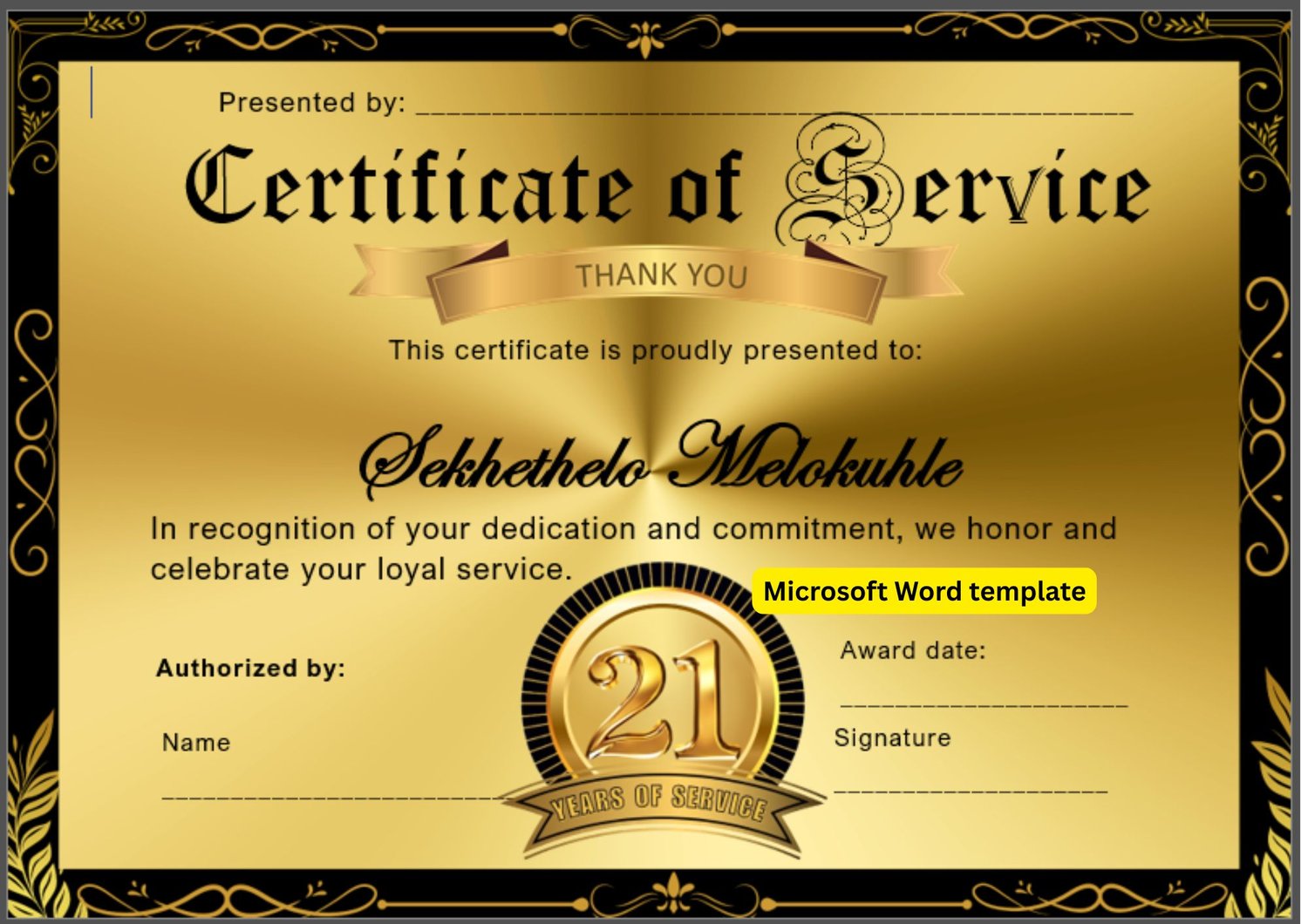 21 Years of service | Editable Microsoft Word template | Landscape G0103L210021