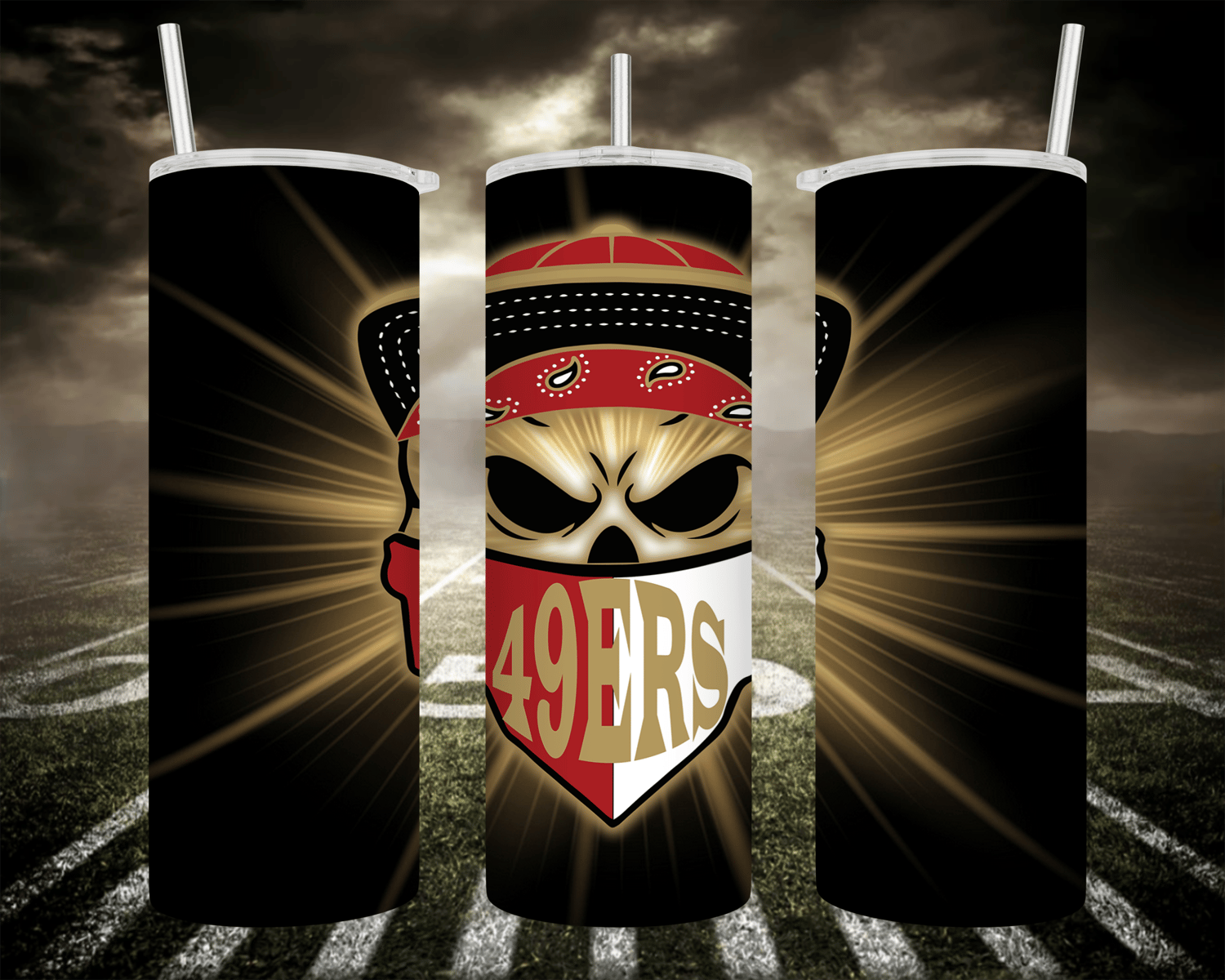 San Francisco 49ERS Skull With Hanky - 20 oz Skinny Tumbler Wrap - Sublimation Design - PNG file