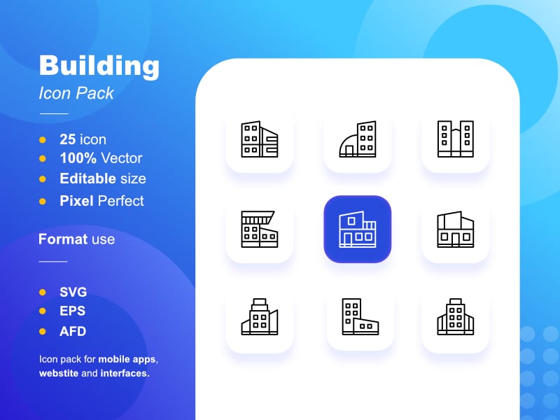 Building icon pack comprises 25 stylish icons.
