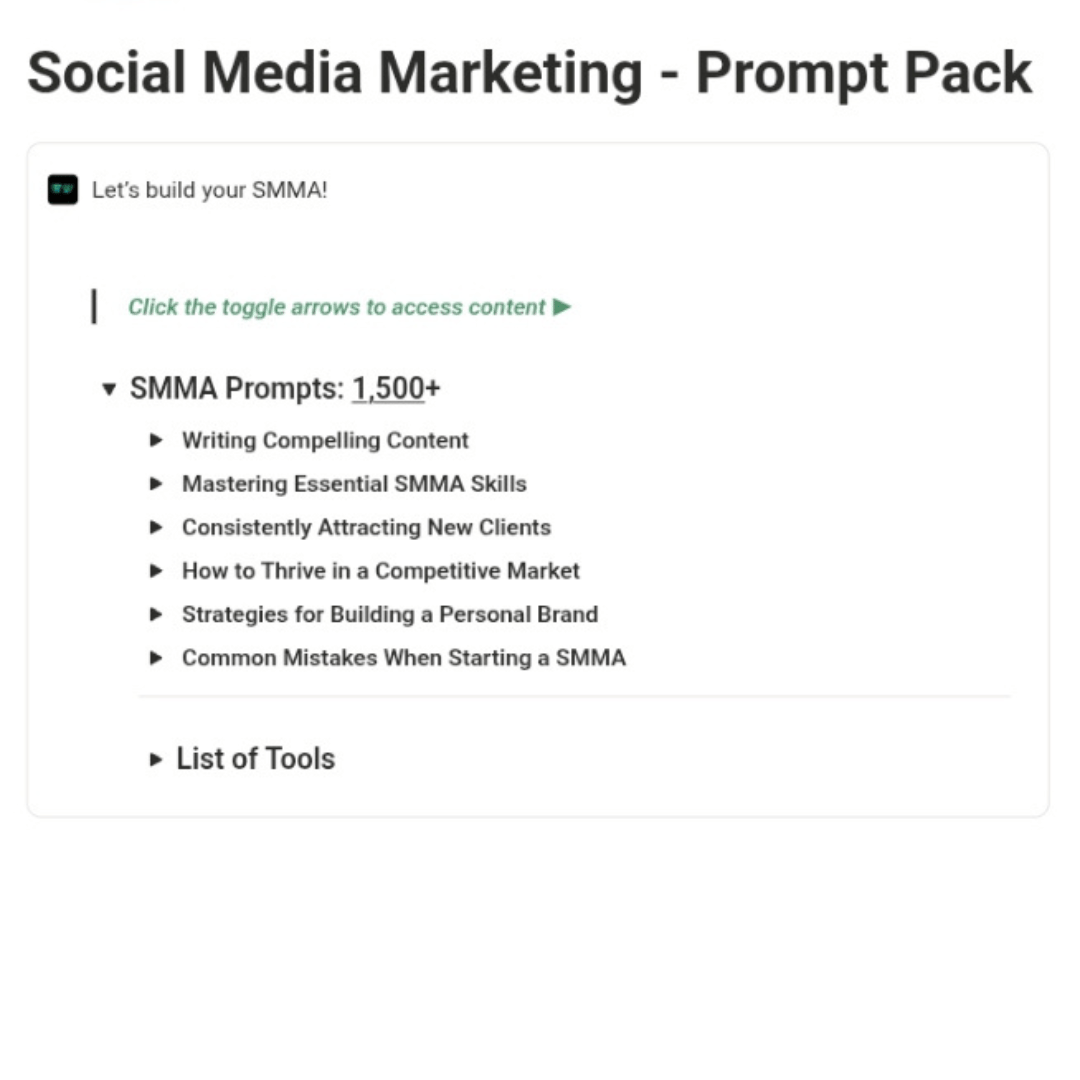 1,500 done-for-you AI prompts — the complete operating system for SMMA owners who are ready to stop struggling and start scaling.