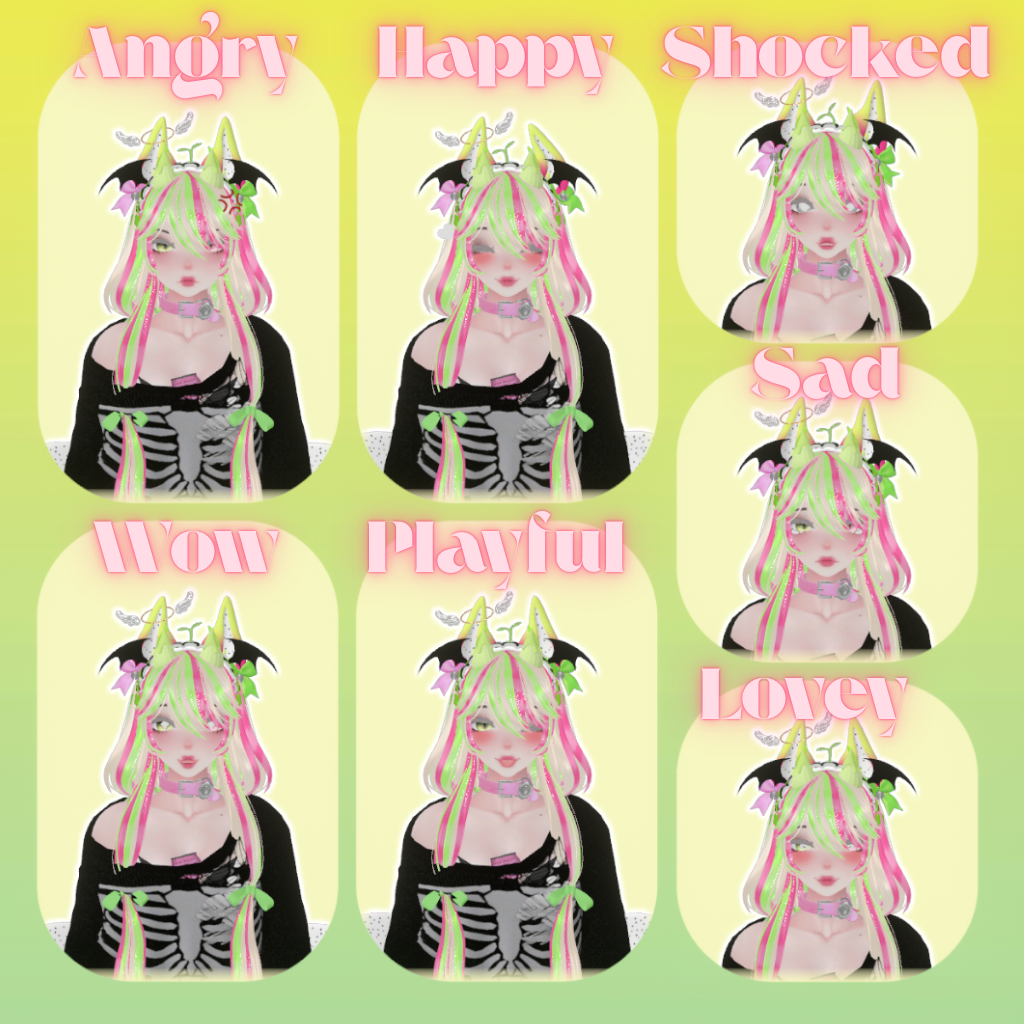 🩷Has hue shift for; skin, hair, eyes, bat stuff, boots, hair, collar, top, glasses, and head accessories.