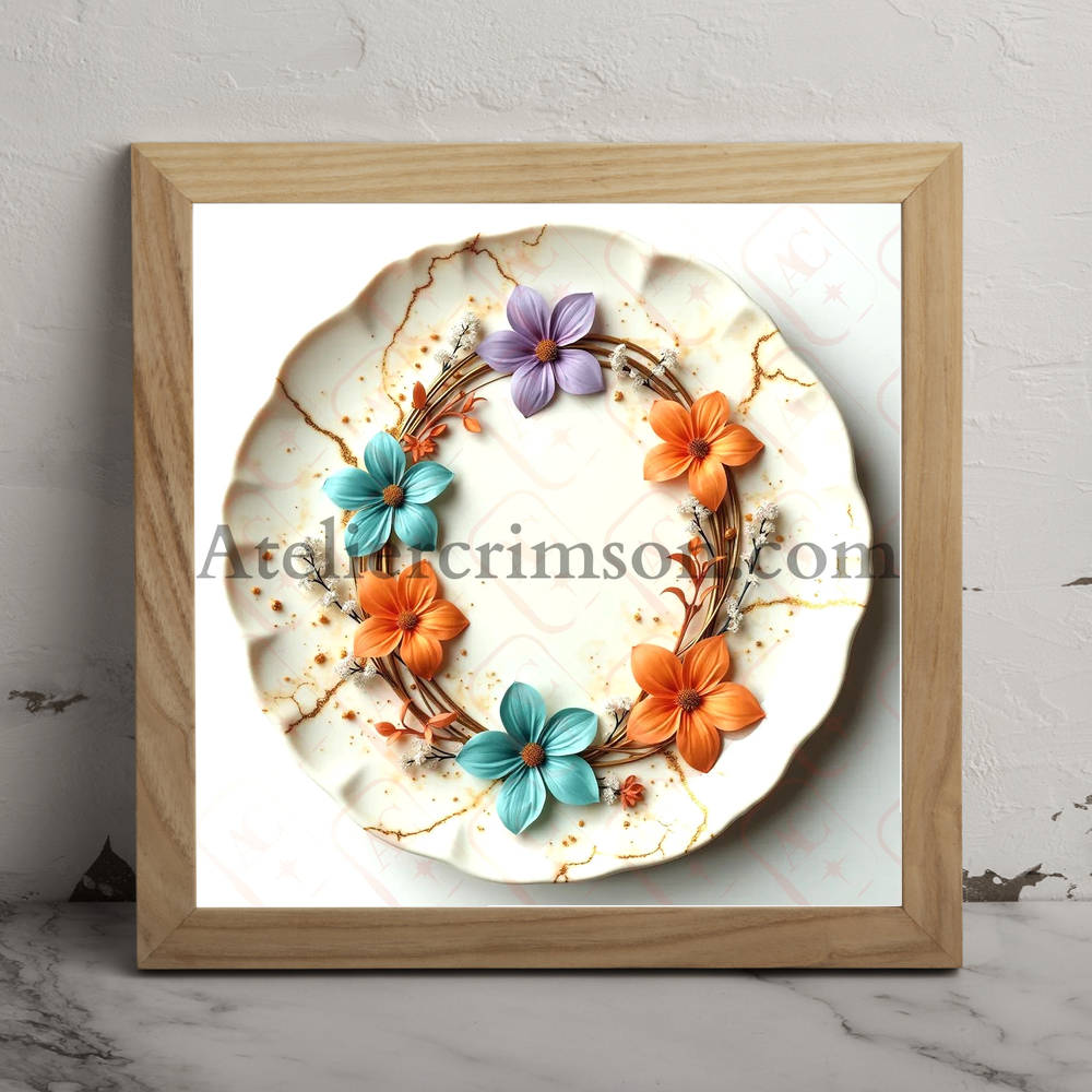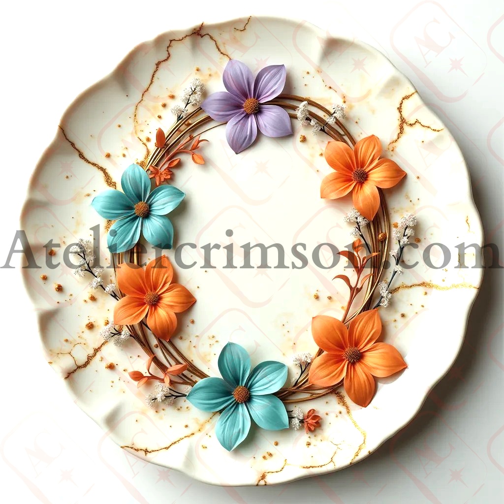 The letter O flowers and procelaine .Download Now this high quality AI-generated image, perfect for adding a touch of tranquility and creativity to any space.