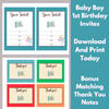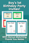 Boy's 1st Birthday Party Invitations | Printable Boy's 1st Birthday Invites | Bonus Matching Thank You Notes