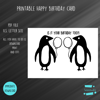 Happy Birthday Card featuring TWIN PENGUINS! Immediately downloadable and printable. Great card for twins. Black and white minimalist style.