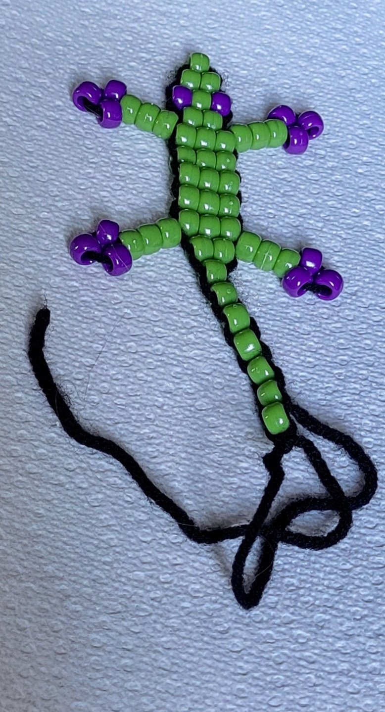 This two tone familiar features Purple and Green beads carefully woven together with yarn. Each one is unique, full of personality, and handmade with love and magyk.